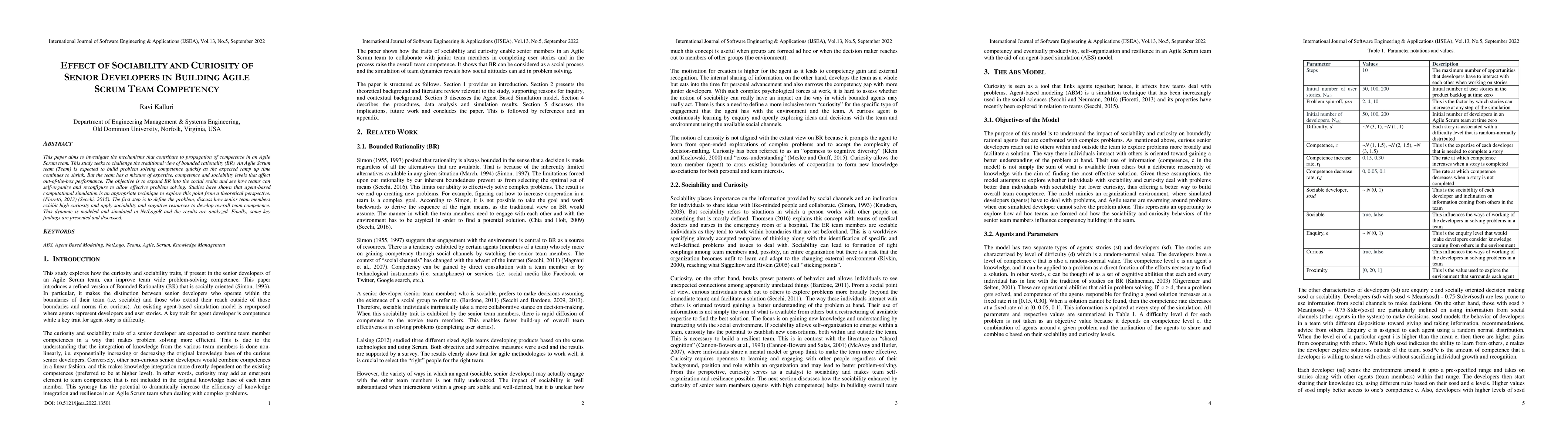 This paper explores how senior developers' sociability and curiosity influence Agile Scrum team competency through agent-based computational simulations. It challenges traditional bounded rationality by demonstrating how social dynamics among team members enhance problem-solving capabilities.