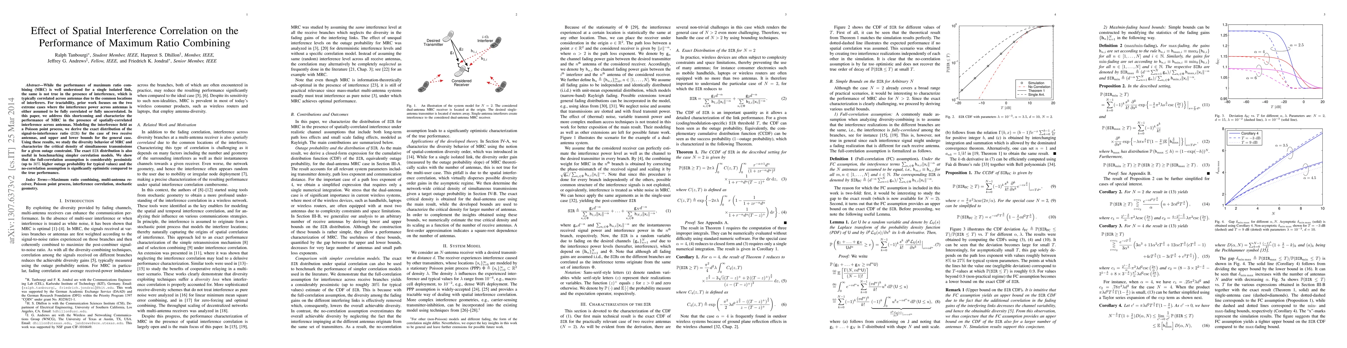 While the performance of maximum ratio combining (MRC) is well understood for a single isolated link, the same is not true in the presence of interference, which is typically correlated across antennas due to the common locations of interferers. For tractability, prior work focuses on the two extreme cases where the interference power across antennas is either assumed to be fully correlated or fully uncorrelated. In this paper, we address this shortcoming and characterize the performance of MRC in the presence of spatially-correlated interference across antennas. Modeling the interference field as a Poisson point process, we derive the exact distribution of the signal-to-interference ratio (SIR) for the case of two receive antennas, and upper and lower bounds for the general case. Using these results, we study the diversity behavior of MRC and characterize the critical density of simultaneous transmissions for a given outage constraint. The exact SIR distribution is also useful in benchmarking simpler correlation models. We show that the full-correlation assumption is considerably pessimistic (up to 30% higher outage probability for typical values) and the no-correlation assumption is significantly optimistic compared to the true performance.