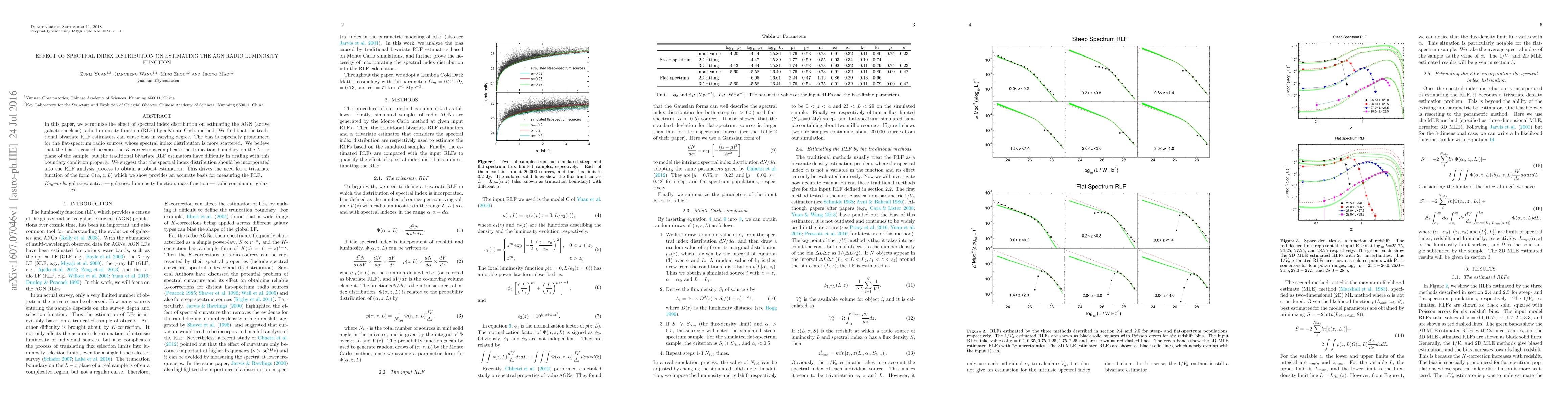 This paper investigates how spectral index distribution affects the estimation of AGN radio luminosity functions (RLF) using a Monte Carlo method, revealing that traditional bivariate RLF estimators introduce bias, particularly for flat-spectrum sources. The study suggests incorporating spectral index distribution into the RLF analysis to achieve a more accurate trivariate function $\Phi(\alpha,z,L)$.