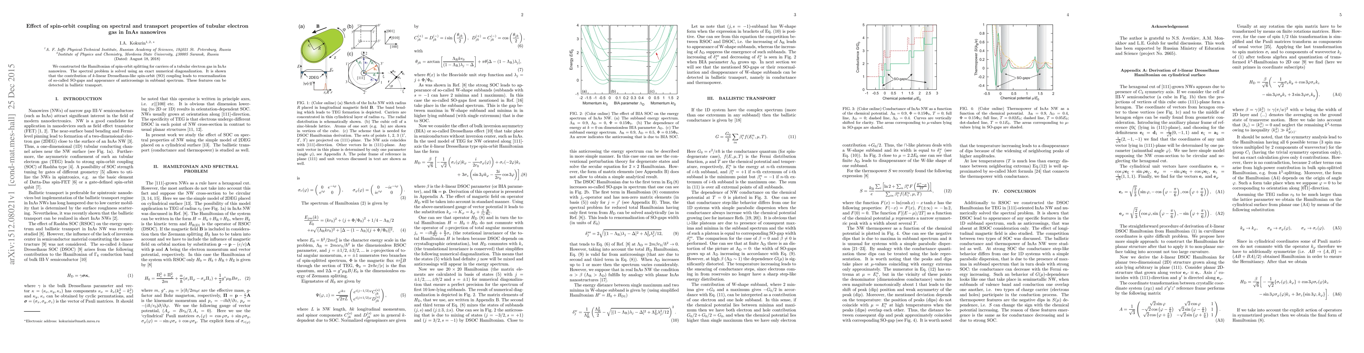 The study reveals that k-linear Dresselhaus-like spin-orbit coupling in InAs nanowires leads to renormalization of spin-orbit gaps and anticrossings in the subband spectrum, which can be observed in ballistic transport. Numerical diagonalization confirms these effects on the spectral properties of the tubular electron gas.