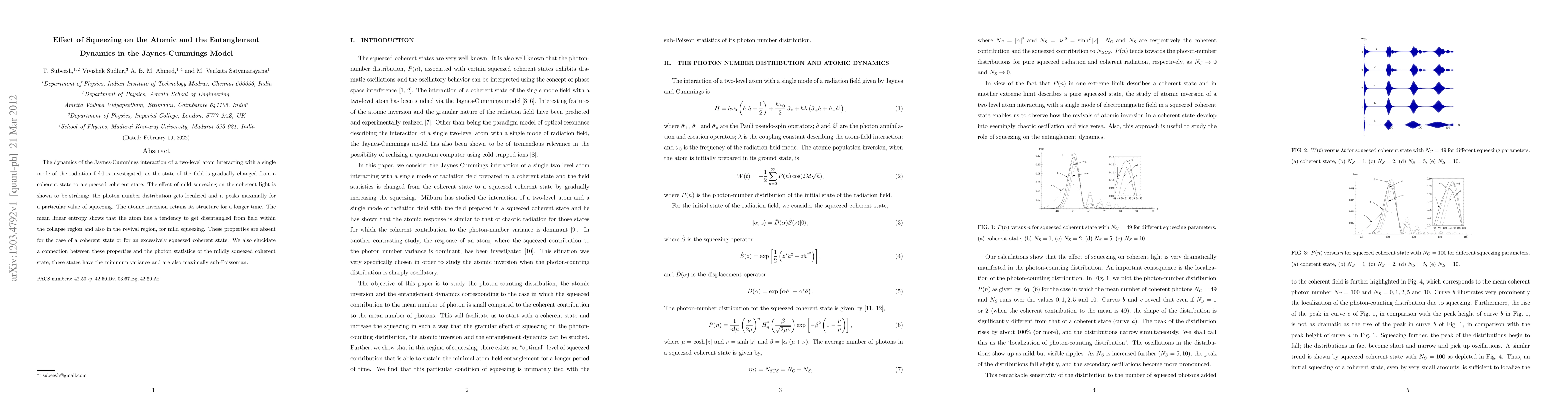 This paper investigates the dynamics of the Jaynes-Cummings model under mild squeezing, showing that it localizes the photon number distribution and prolongs atomic inversion. Mild squeezing also leads to disentangled atom-field dynamics and minimal variance photon statistics.