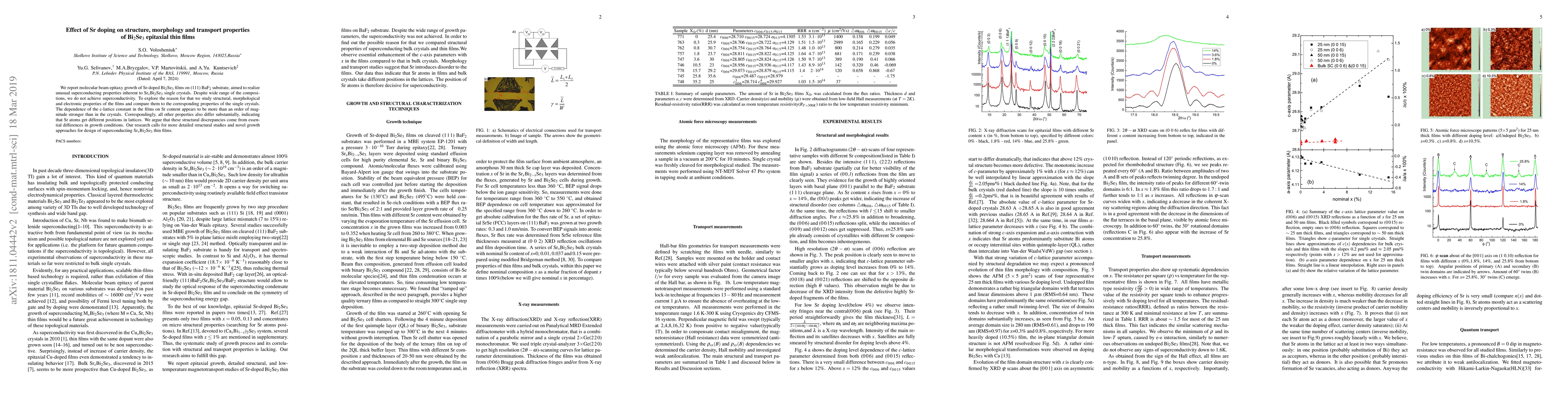 This study investigates the growth of Sr-doped Bi$_2$Se$_3$ thin films via molecular beam epitaxy on BaF$_2$ substrates, finding that despite doping, superconductivity is not achieved. Structural and morphological analyses reveal significant differences between films and single crystals, suggesting that Sr atoms occupy different lattice positions due to growth condition discrepancies.
