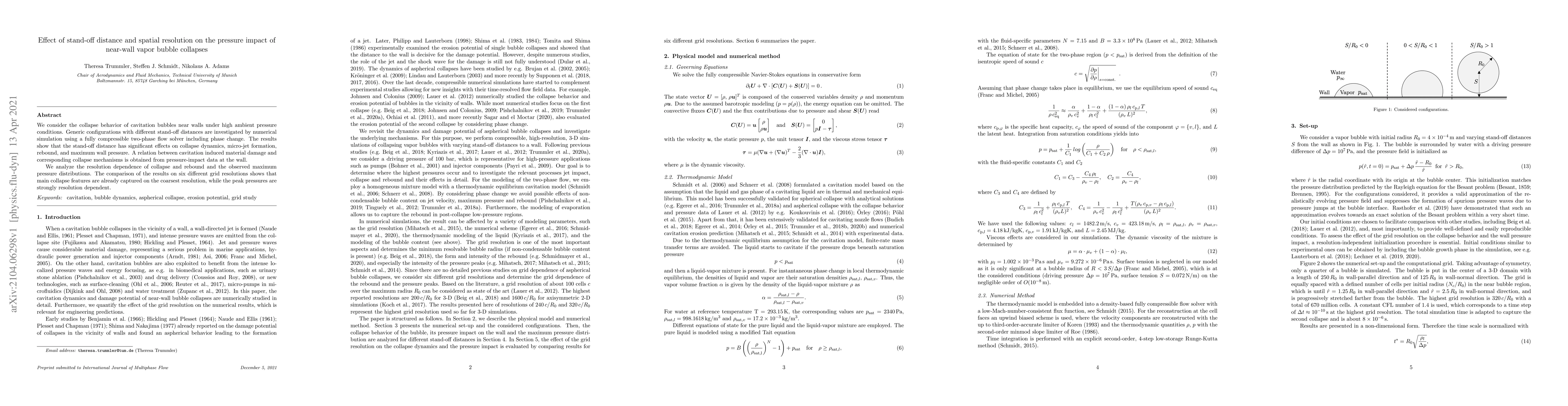 This study investigates the dynamics of cavitation bubble collapses near walls using numerical simulations, revealing that stand-off distance significantly impacts collapse behavior, micro-jet formation, and maximum wall pressure. The research also finds that while main collapse features are captured at coarse resolutions, peak pressures are highly resolution dependent.