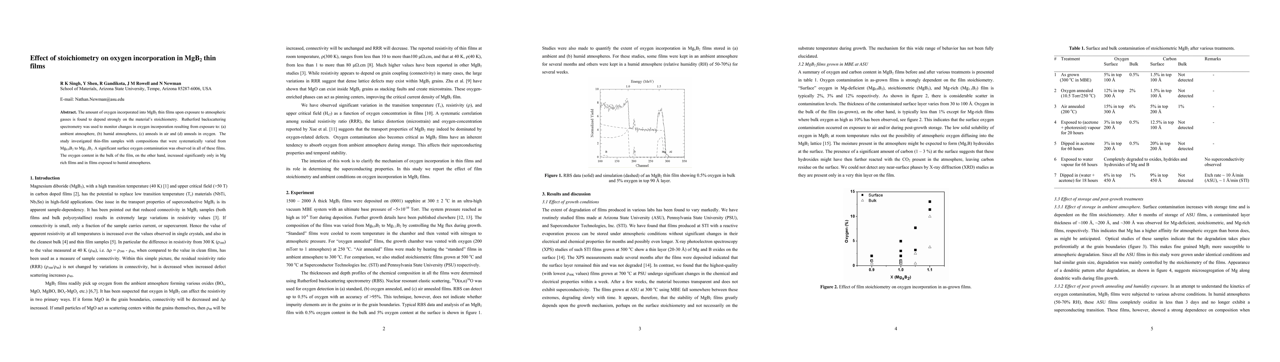 This study reveals that oxygen incorporation in MgB2 thin films varies significantly with stoichiometry, with bulk oxygen content increasing notably in Mg-rich films and those exposed to humid conditions, while surface contamination is consistent across all compositions.