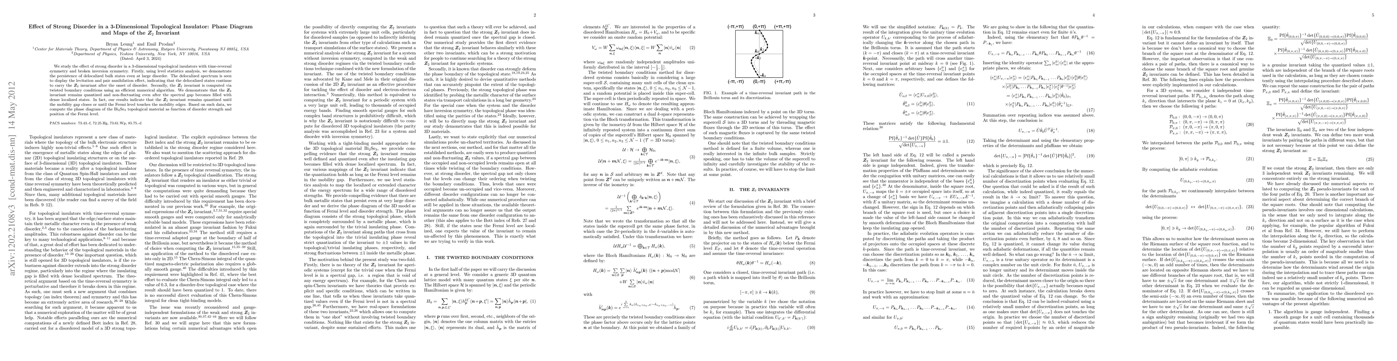 This paper investigates the impact of strong disorder on a 3D topological insulator, showing that delocalized bulk states persist despite large disorder, maintaining the Z2 invariant. The Z2 invariant remains quantized even when the spectral gap is filled with localized states, leading to the computation of the phase diagram for Bi2Se3.