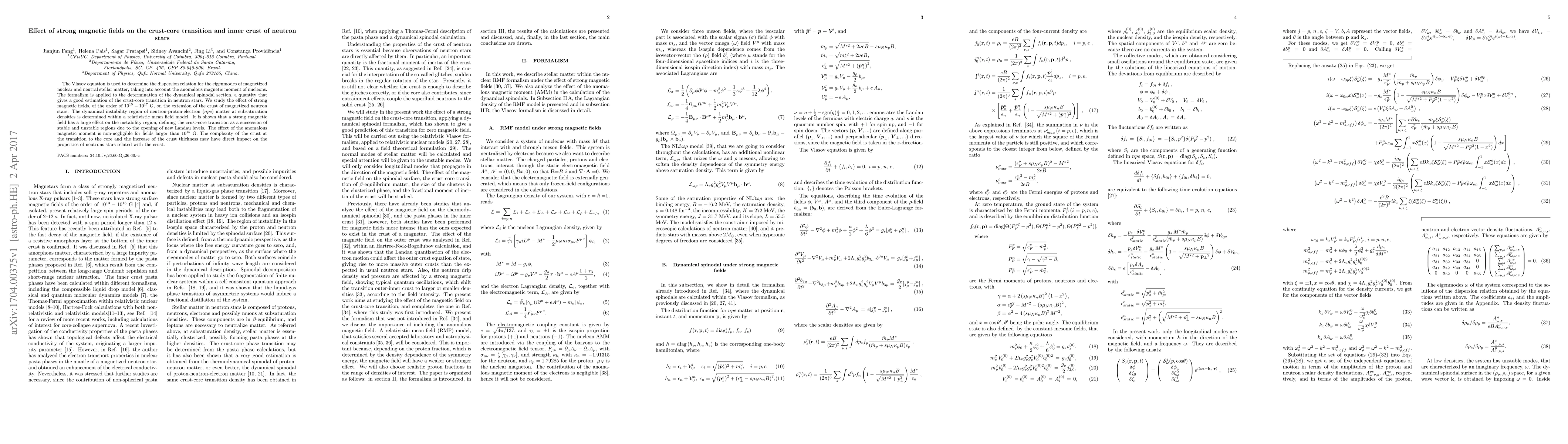 The Vlasov equation is used to determine the dispersion relation for the eigenmodes of magnetized nuclear and neutral stellar matter, taking into account the anomalous magnetic moment of nucleons. The formalism is applied to the determination of the dynamical spinodal section, a quantity that gives a good estimation of the crust-core transition in neutron stars. We study the effect of strong magnetic fields, of the order of $10^{15}-10^{17}$ G, on the extension of the crust of magnetized neutron stars. The dynamical instability region of neutron-proton-electron ($npe$) matter at subsaturation densities is determined within a relativistic mean field model. It is shown that a strong magnetic field has a large effect on the instability region, defining the crust-core transition as a succession of stable and unstable regions due to the opening of new Landau levels. The effect of the anomalous magnetic moment is non-negligible for fields larger than 10$^{15}$ G. The complexity of the crust at the transition to the core and the increase of the crust thickness may have direct impact on the properties of neutrons stars related with the crust.