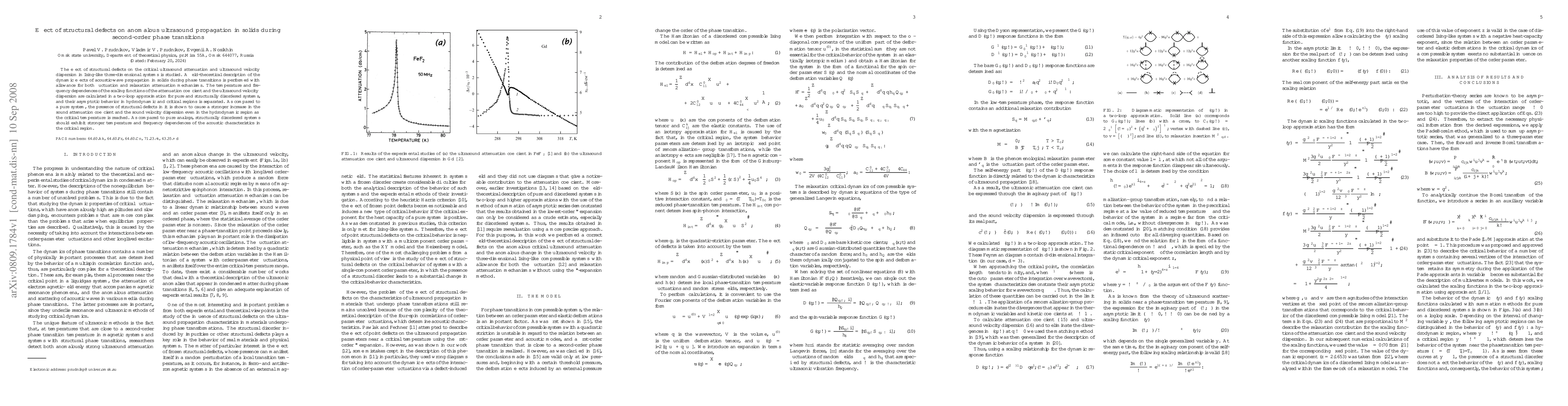 This paper investigates how structural defects in solids affect ultrasound propagation during second-order phase transitions, revealing that defects enhance both ultrasound attenuation and velocity dispersion, especially near critical temperatures. The study uses field theory to analyze the temperature and frequency dependencies of these effects in both pure and disordered systems.