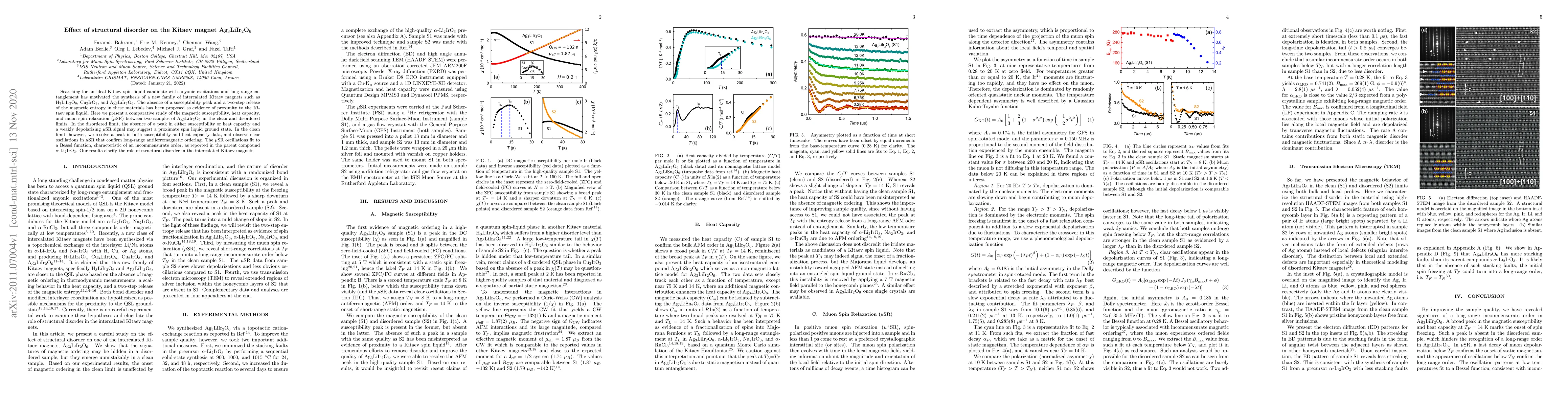 Searching for an ideal Kitaev spin liquid candidate with anyonic excitations and long-range entanglement has motivated the synthesis of a new family of intercalated Kitaev magnets such as H$_{3}$LiIr$_{2}$O$_{6}$, Cu$_{2}$IrO$_{3}$, and Ag$_{3}$LiIr$_{2}$O$_{6}$. The absence of a susceptibility peak and a two-step release of the magnetic entropy in these materials has been proposed as evidence of proximity to the Kitaev spin liquid. Here we present a comparative study of the magnetic susceptibility, heat capacity, and muon spin relaxation ($\mu$SR) between two samples of Ag$_{3}$LiIr$_{2}$O$_{6}$ in the clean and disordered limits. In the disordered limit, the absence of a peak in either susceptibility or heat capacity and a weakly depolarizing $\mu$SR signal may suggest a proximate spin liquid ground state. In the clean limit, however, we resolve a peak in both susceptibility and heat capacity data, and observe clear oscillations in $\mu$SR that confirm long-range antiferromagnetic ordering. The $\mu$SR oscillations fit to a Bessel function, characteristic of an incommensurate order, as reported in the parent compound $\alpha$-Li$_{2}$IrO$_{3}$. Our results clarify the role of structural disorder in the intercalated Kitaev magnets.