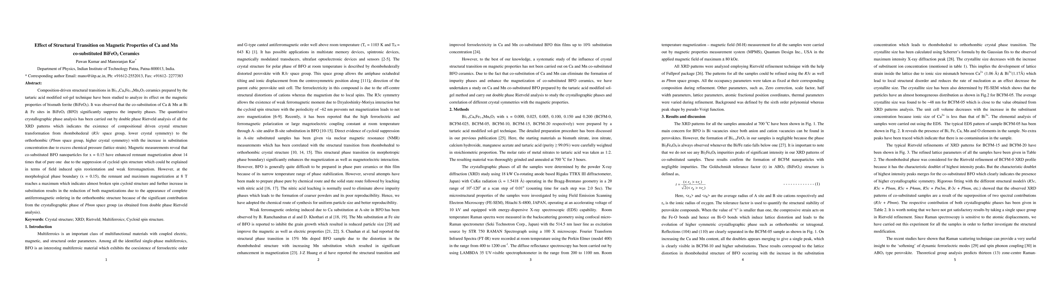 This study investigates the impact of Ca and Mn co-substitution on the structural and magnetic properties of BiFeO3 ceramics. The research shows that the substitution induces a phase transition from rhombohedral to orthorhombic symmetry, enhancing remnant magnetization by 14 times at x = 0.15, but reducing it again due to antiferromagnetic ordering in the orthorhombic phase.