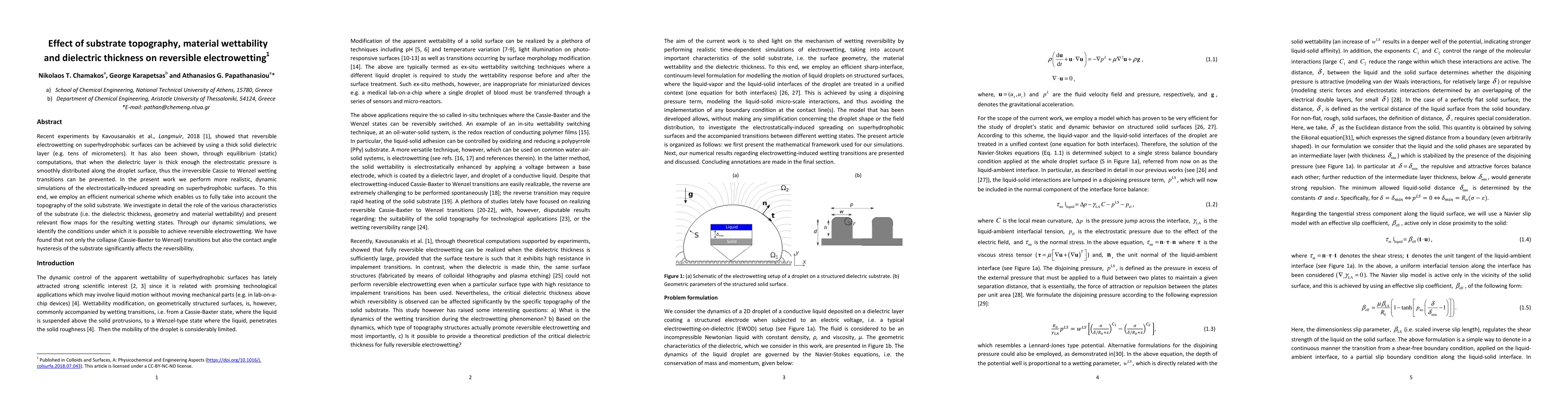 This study investigates the dynamic effects of substrate topography, dielectric thickness, and material wettability on reversible electrowetting on superhydrophobic surfaces using advanced numerical simulations. The research identifies conditions for reversible electrowetting, highlighting the influence of contact angle hysteresis and transition types on the process.