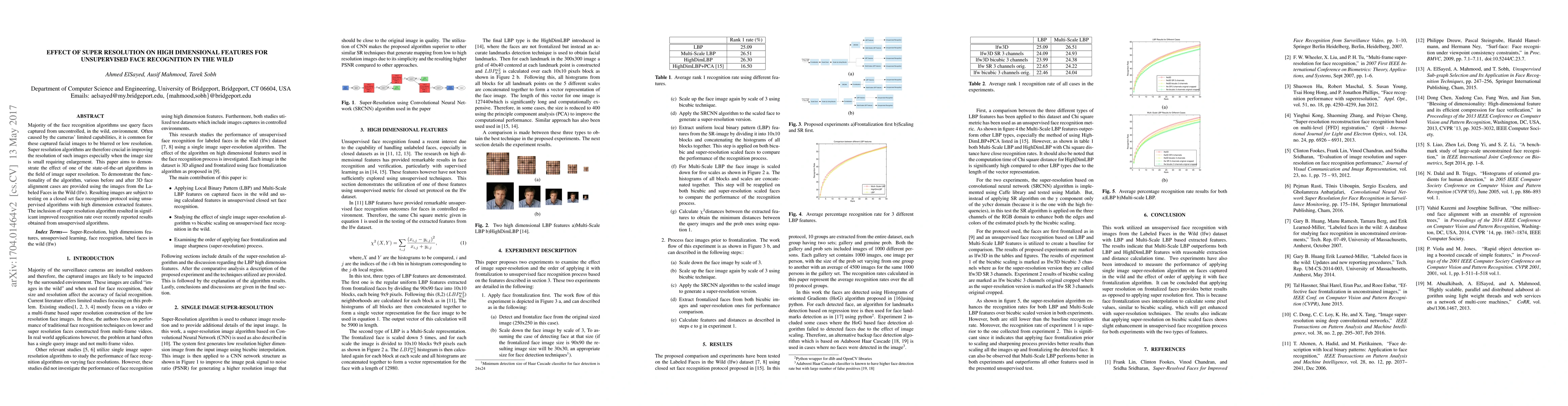 This paper investigates the impact of a state-of-the-art super resolution algorithm on high-dimensional feature extraction for unsupervised face recognition in uncontrolled environments. The results show a significant improvement in recognition rates when super resolution is applied to low-resolution, in-the-wild images.