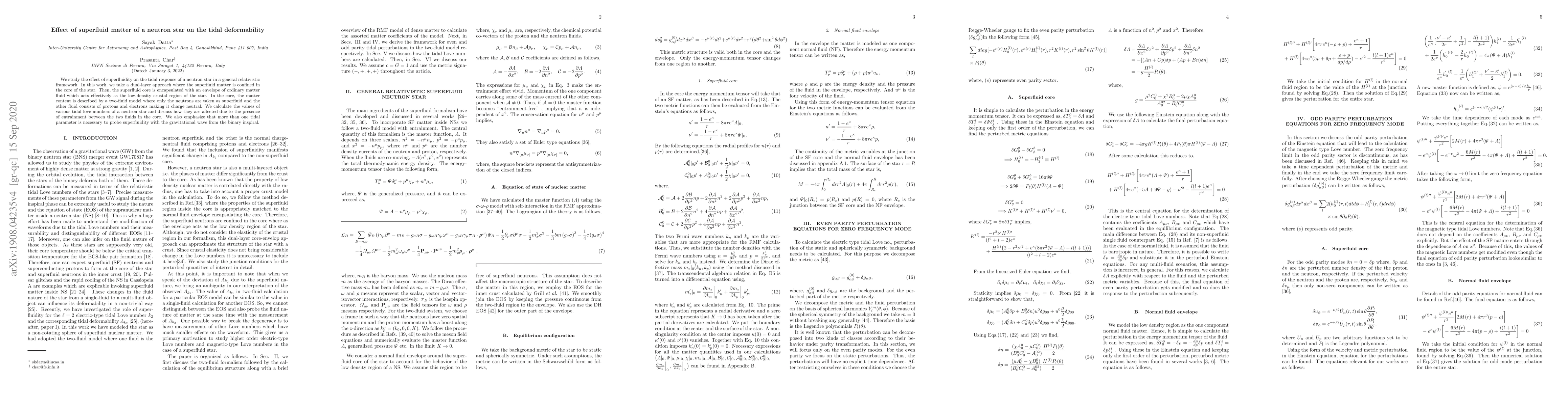 We study the effect of superfluidity on the tidal response of a neutron star in a general relativistic framework. In this work, we take a dual-layer approach where the superfluid matter is confined in the core of the star. Then, the superfluid core is encapsulated with an envelope of ordinary matter fluid which acts effectively as the low-density crustal region of the star. In the core, the matter content is described by a two-fluid model where only the neutrons are taken as superfluid and the other fluid consists of protons and electrons making it charge neutral. We calculate the values of various tidal love numbers of a neutron star and discuss how they are affected due to the presence of entrainment between the two fluids in the core. We also emphasize that more than one tidal parameter is necessary to probe superfluidity with the gravitational wave from the binary inspiral.