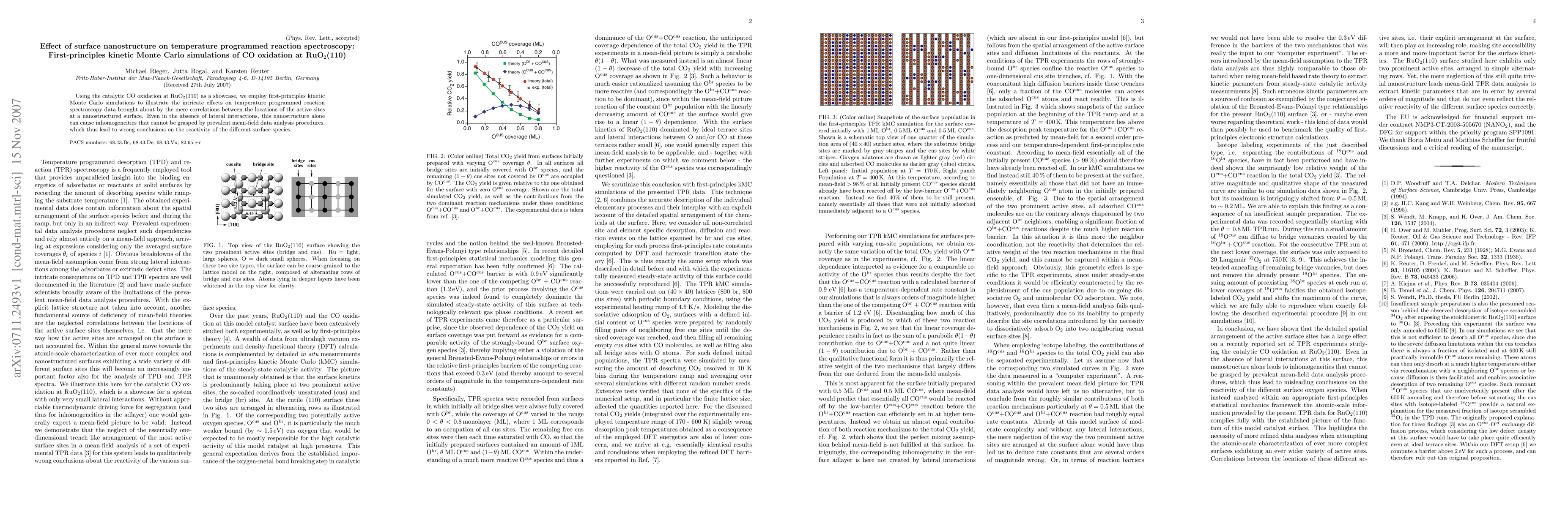 This study uses first-principles kinetic Monte Carlo simulations to demonstrate how surface nanostructures influence the temperature programmed reaction spectroscopy data for CO oxidation on RuO2(110). The simulations reveal that nanostructure-induced inhomogeneities can lead to incorrect conclusions about surface species reactivity, highlighting the limitations of mean-field data analysis.