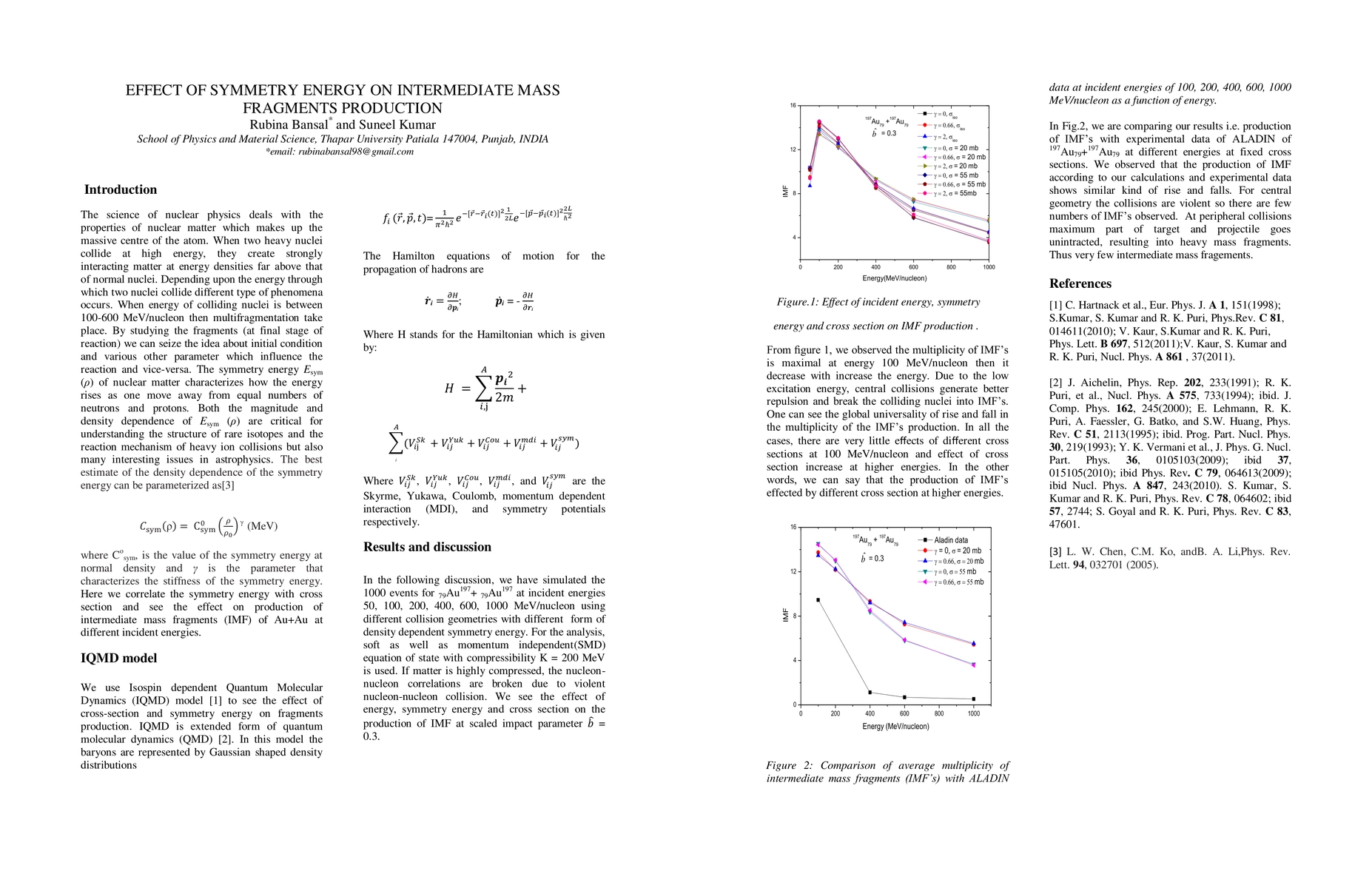 When energy of colliding nuclei is between 100-600 MeV/nucleon then multifragmentation take place. By studying the fragments (at final stage of reaction) we can seize the idea about initial condition and various other parameter which influence the reaction and vice-versa. The symmetry energy Esym ({\rho}) of nuclear matter characterizes how the energy rises as one move away from equal numbers of neutrons and protons. Both the magnitude and density dependence of Esym ({\rho}) are critical for understanding the structure of rare isotopes and the reaction mechanism of heavy ion collisions but also many interesting issues in astrophysics.