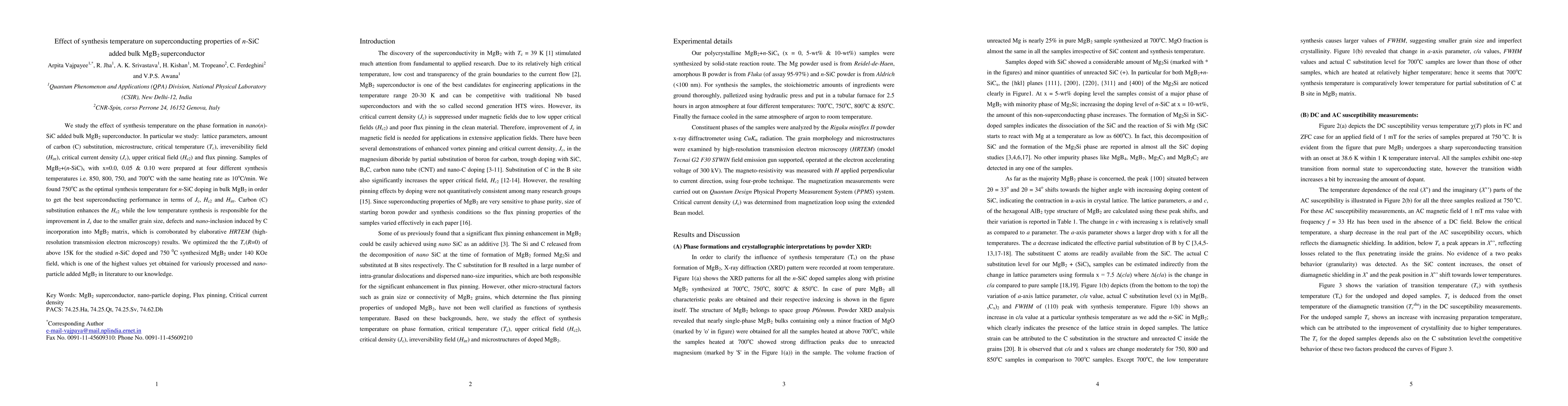 This study investigates the impact of synthesis temperature on the superconducting properties of MgB2 doped with n-SiC, finding that 750°C is optimal for achieving the best critical current density, upper critical field, and irreversibility field. Carbon substitution enhances the upper critical field, while lower synthesis temperatures improve critical current density due to smaller grain sizes and defects.