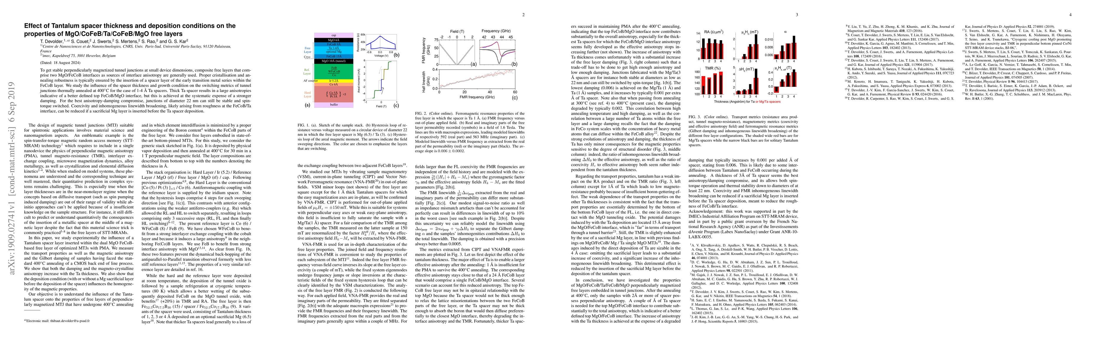 This paper investigates how tantalum spacer thickness and deposition conditions affect the properties of MgO/CoFeB/Ta/CoFeB/MgO free layers in tunnel junctions. Thicker Ta spacers enhance anisotropy but increase damping, while a sacrificial Mg layer before Ta deposition reduces coercivity and linewidth broadening.