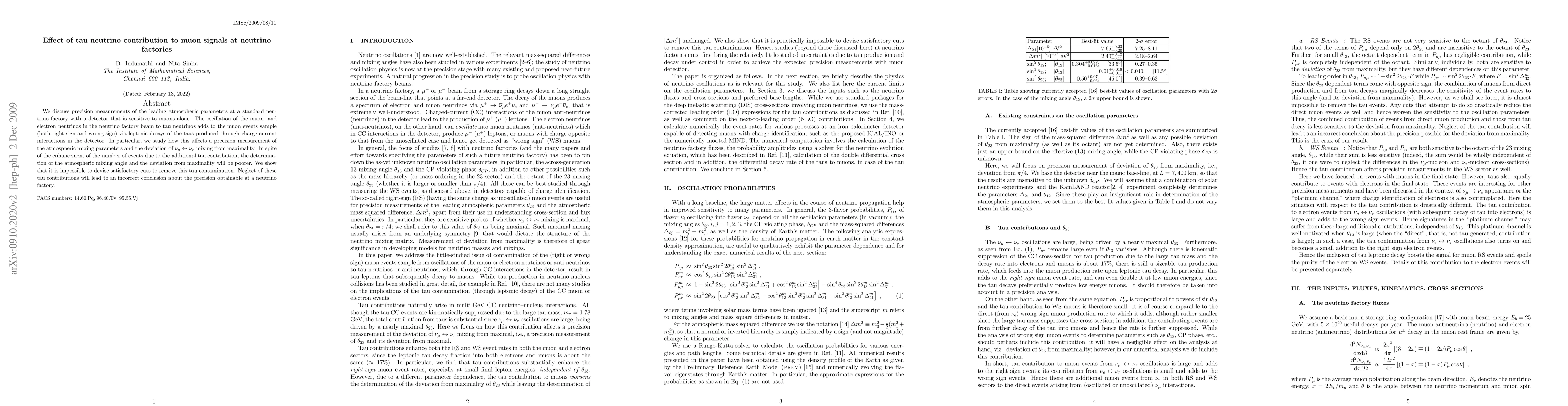 This paper examines the impact of tau neutrinos on precision measurements of atmospheric neutrino parameters in a muon-sensitive detector at a neutrino factory. Despite increased event numbers due to tau contributions, the accuracy of determining the atmospheric mixing angle and deviation from maximal mixing is reduced. The study concludes that tau contamination cannot be effectively eliminated with cuts, and neglecting these contributions may lead to erroneous precision conclusions.