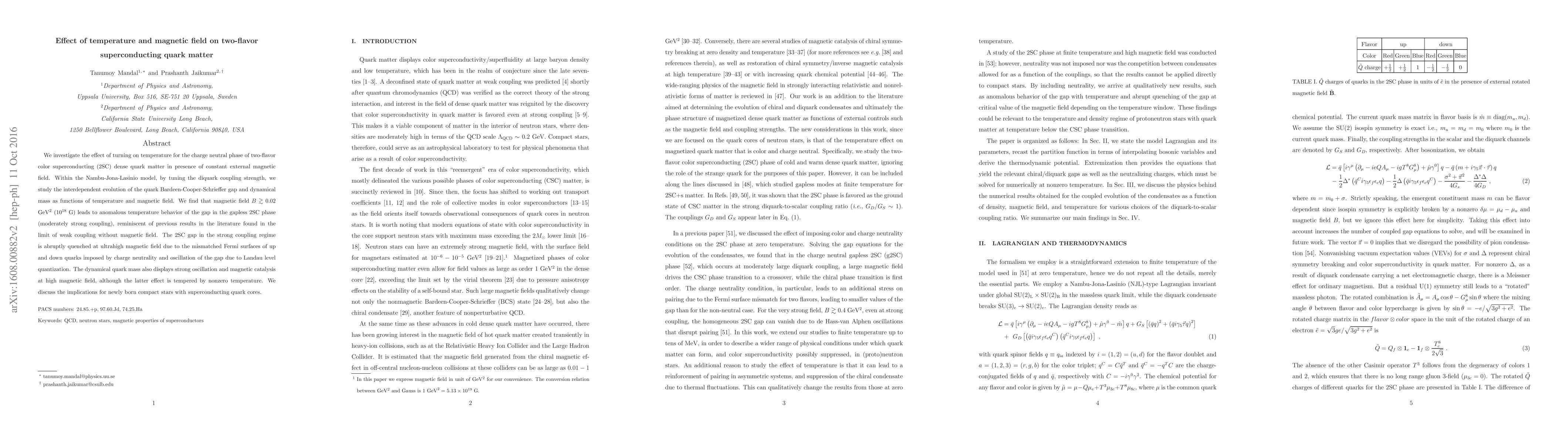 This paper examines how temperature and magnetic fields affect two-flavor superconducting quark matter in the charge-neutral 2SC phase, using the Nambu-Jona-Lasinio model. It finds that magnetic fields above $0.02$ GeV$^2$ cause anomalous temperature behavior and quenching of the 2SC gap at ultrahigh fields, with significant implications for compact stars.