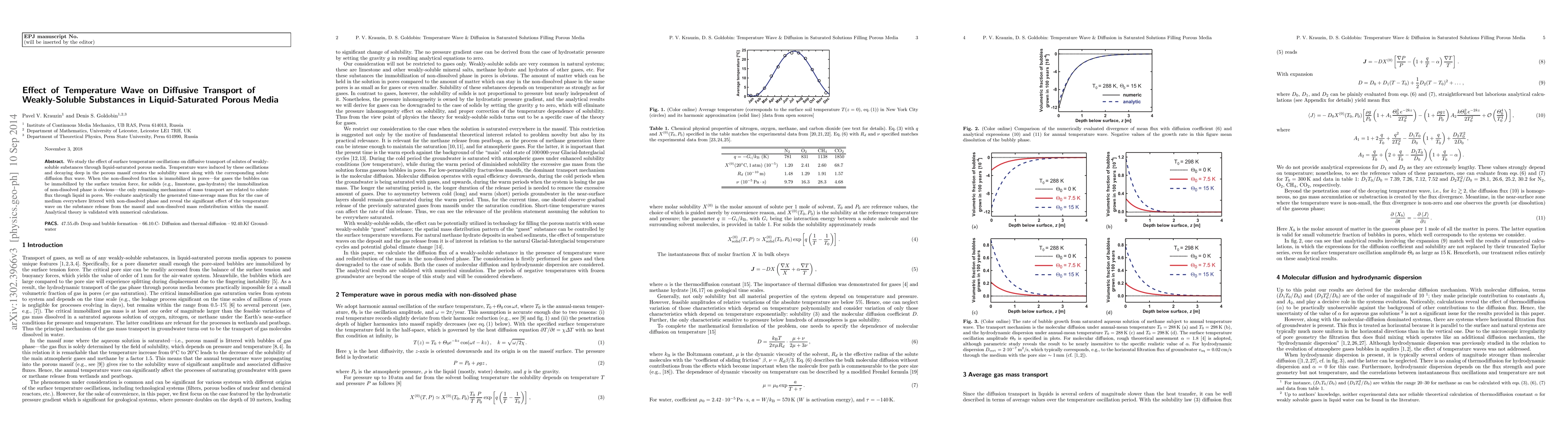 This research explores how temperature waves in liquid-saturated porous media affect the diffusion of weakly soluble substances. It reveals significant effects on substance release and redistribution within the media.