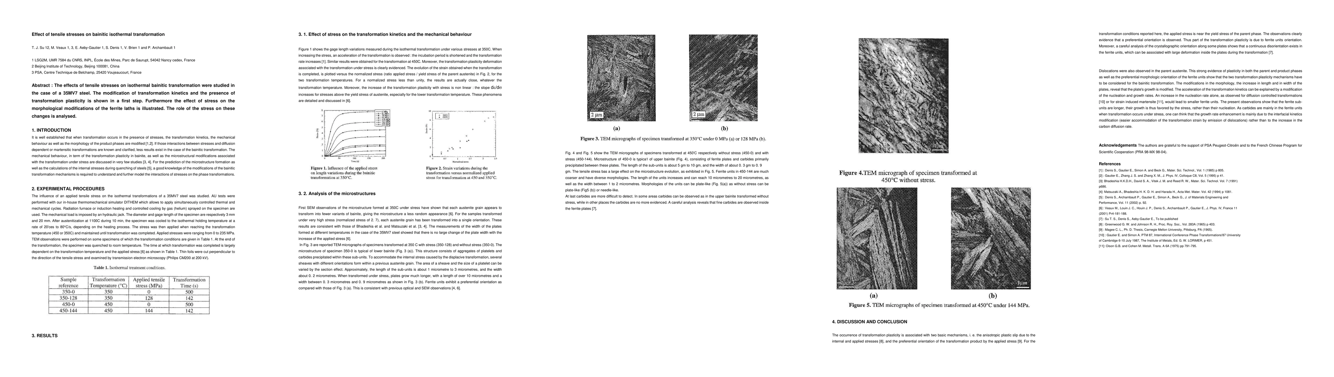 This study investigates how tensile stresses affect the bainitic transformation in a steel alloy, revealing modifications to transformation kinetics and morphological changes to ferrite laths.
