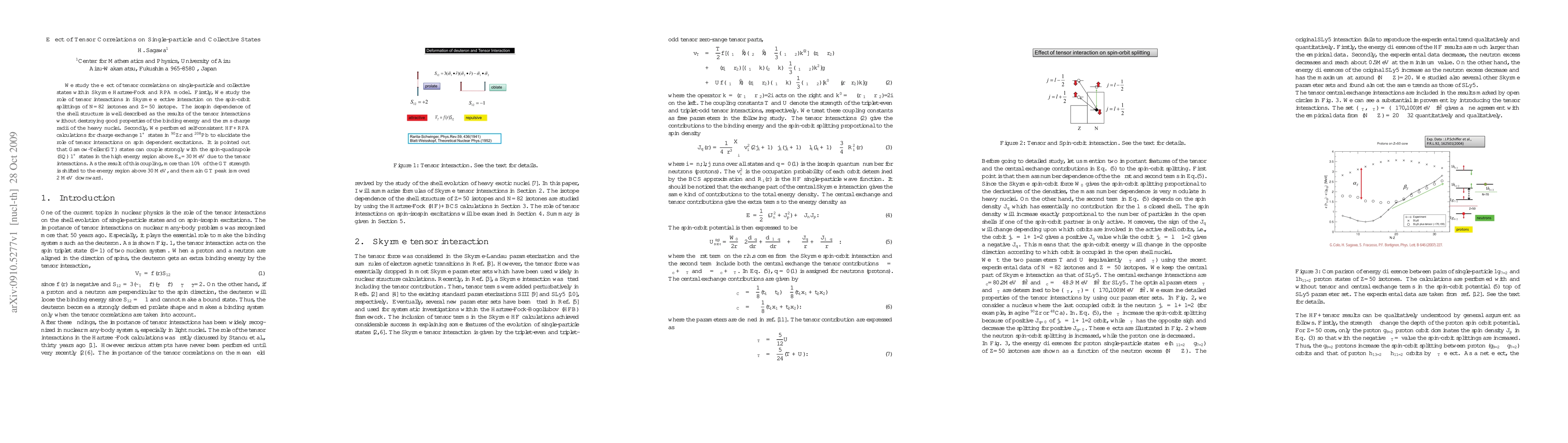 We study the effect of tensor correlations on single-particle and collective states within Skyrme Hartree-Fock and RPA model. Firstly, We study the role of tensor interactions in Skyrme effective interaction on the spin-orbit splittings of N=82 isotones and Z=50 isotope. The isospin dependence of the shell structure is well described as the results of the tensor interactions without destroying good properties of the binding energy and the rms charge radii of the heavy nuclei. Secondly, We performed self-consistent HF+RPA calculations for charge exchange 1$^+$ states in $^{90}$Zr and $^{208}$Pb to elucidate the role of tensor interactions on spin dependent excitations. It is pointed out that Gamow-Teller(GT) states can couple strongly with the spin-quadrupole (SQ) 1$^+$ states in the high energy region above E$_x$=30 MeV due to the tensor interactions. As the result of this coupling, more than 10% of the GT strength is shifted to the energy region above 30 MeV, and the main GT peak is moved 2 MeV downward.