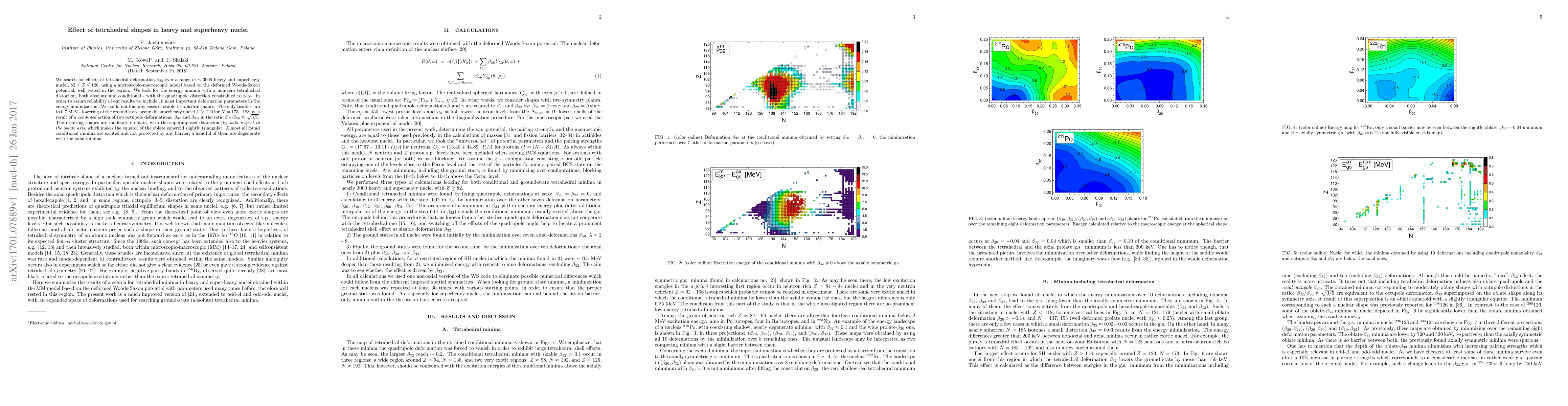 We search for effects of tetrahedral deformation $\beta_{32}$ over a range of $\sim 3000$ heavy and superheavy nuclei, $82\leq Z \leq 126$, using a microscopic-macroscopic model based on the deformed Woods-Saxon potential, well tested in the region. We look for the energy minima with a non-zero tetrahedral distortion, both absolute and conditional - with the quadrupole distortion constrained to zero. In order to assure reliability of our results we include 10 most important deformation parameters in the energy minimization. We could not find any cases of stable tetrahedral shapes. The only sizable - up to 0.7 MeV - lowering of the ground state occurs in superheavy nuclei $Z\geq 120$ for $N=173-188$, as a result of a {\it combined} action of two octupole deformations: $\beta_{32}$ and $\beta_{30}$, in the ratio $\beta_{32}/\beta_{30}\approx \sqrt{3/5}$. The resulting shapes are moderately oblate, with the superimposed distortion $\beta_{33}$ {\it with respect to the oblate axis}, which makes the equator of the oblate spheroid slightly triangular. Almost all found conditional minima are excited and not protected by any barrier, a handful of them are degenerate with the axial minima.