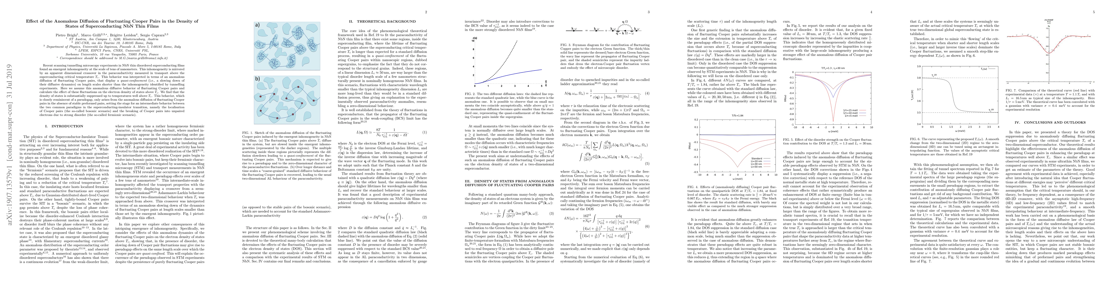 This paper investigates how anomalous diffusion of fluctuating Cooper pairs in NbN thin films affects the density of states above the superconducting transition temperature $T_c$, revealing a suppression reminiscent of a pseudogap due to quasi-confinement of Cooper pairs. This intermediate behavior challenges traditional paradigms of the superconducting-insulator transition.