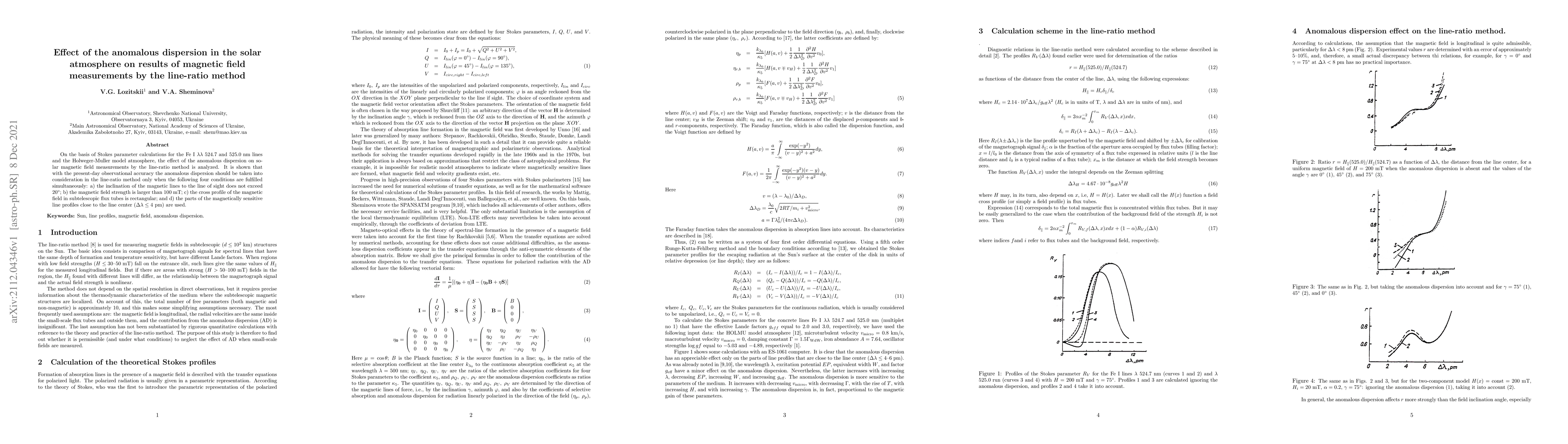 This study analyzes the impact of anomalous dispersion in the solar atmosphere on magnetic field measurements using the line-ratio method, finding that it must be considered under specific conditions: when magnetic lines are not too oblique, fields are strong, flux tubes have rectangular cross-profiles, and near-line-center portions of line profiles are used.
