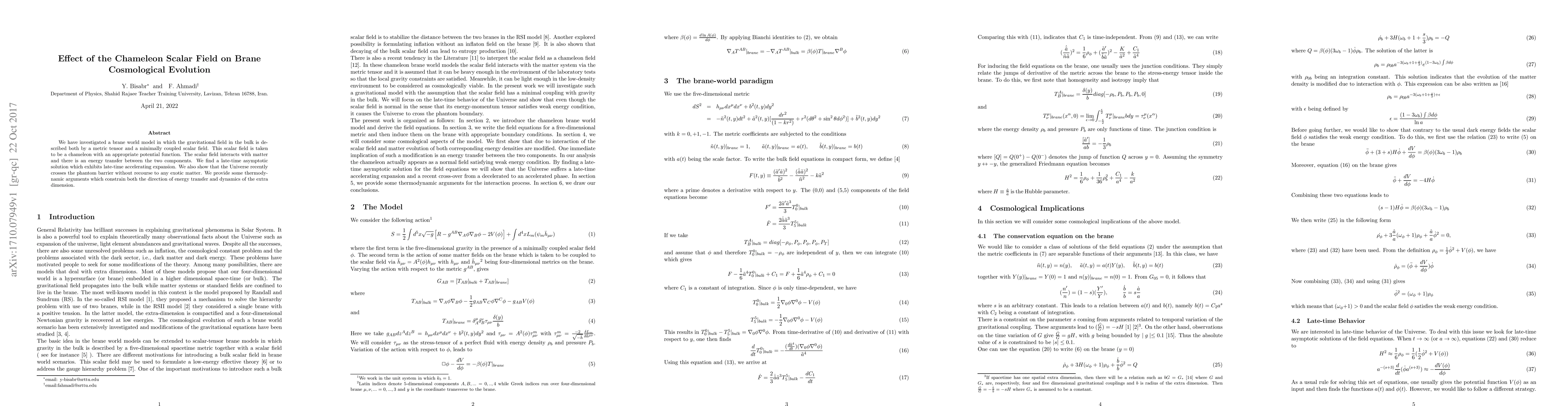 This paper explores a brane world model incorporating a chameleon scalar field, revealing late-time accelerating expansion and a recent crossing of the phantom barrier without exotic matter, while also providing thermodynamic constraints on energy transfer and extra-dimensional dynamics.