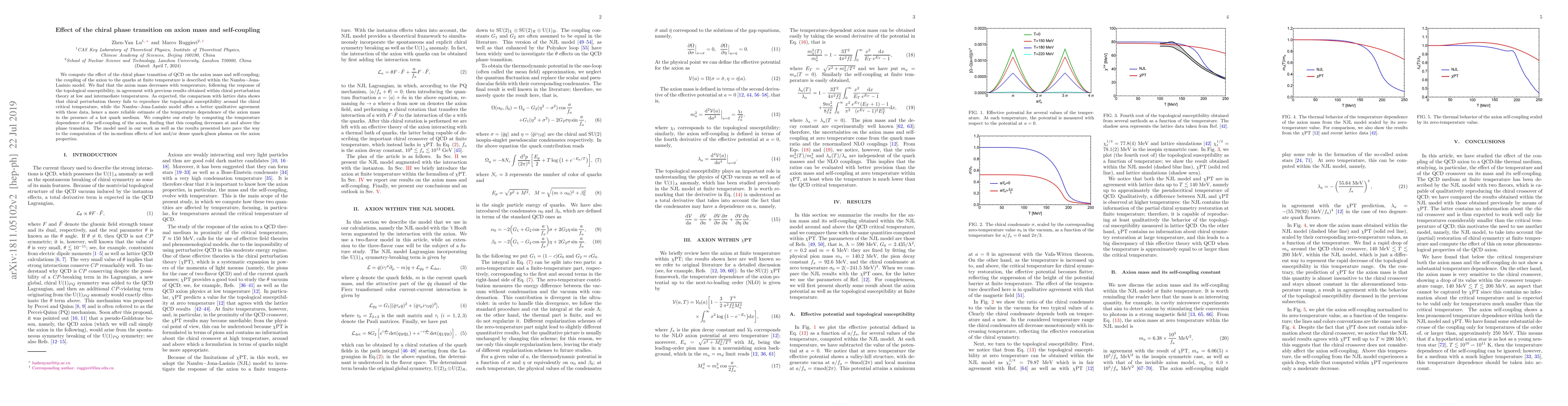 This paper investigates how the chiral phase transition in QCD affects the axion mass and its self-coupling, using the Nambu-Jona-Lasinio model. It finds that the axion mass decreases with temperature, aligning with previous findings, while the model provides a better fit to lattice data compared to chiral perturbation theory.