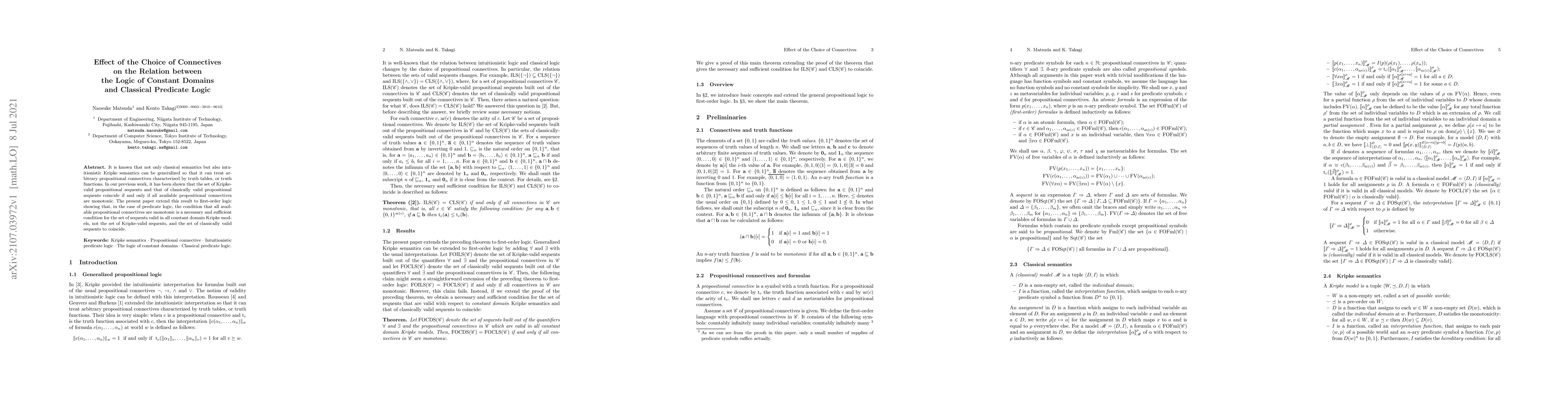It is known that not only classical semantics but also intuitionistic Kripke semantics can be generalized so that it can treat arbitrary propositional connectives characterized by truth tables, or truth functions. In our previous work, it has been shown that the set of Kripke-valid propositional sequents and that of classically valid propositional sequents coincide if and only if all available propositional connectives are monotonic. The present paper extend this result to frst-order logic showing that, in the case of predicate logic, the condition that all available propositional connectives are monotonic is a necessary and sufficient condition for the set of sequents valid in all constant domain Kripke models, not the set of Kripke-valid sequents, and the set of classically valid sequents to coincide.