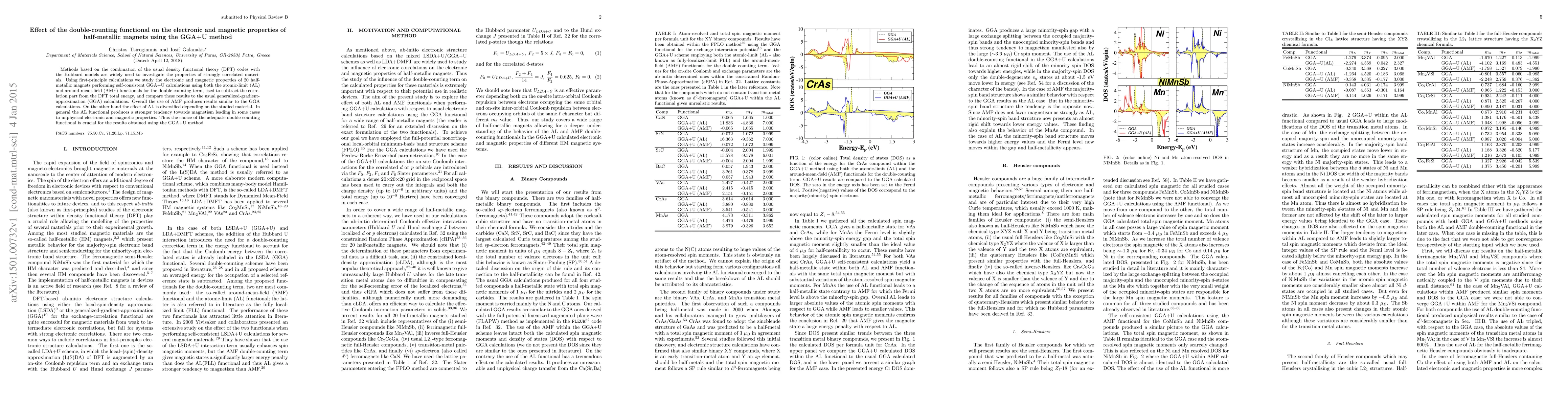 This paper investigates the electronic and magnetic properties of half-metallic magnets using GGA+U calculations with different double-counting functionals. The results show that the around-mean-field functional yields outcomes similar to GGA, while the atomic-limit functional often leads to unphysical properties, highlighting the importance of functional choice in GGA+U studies.