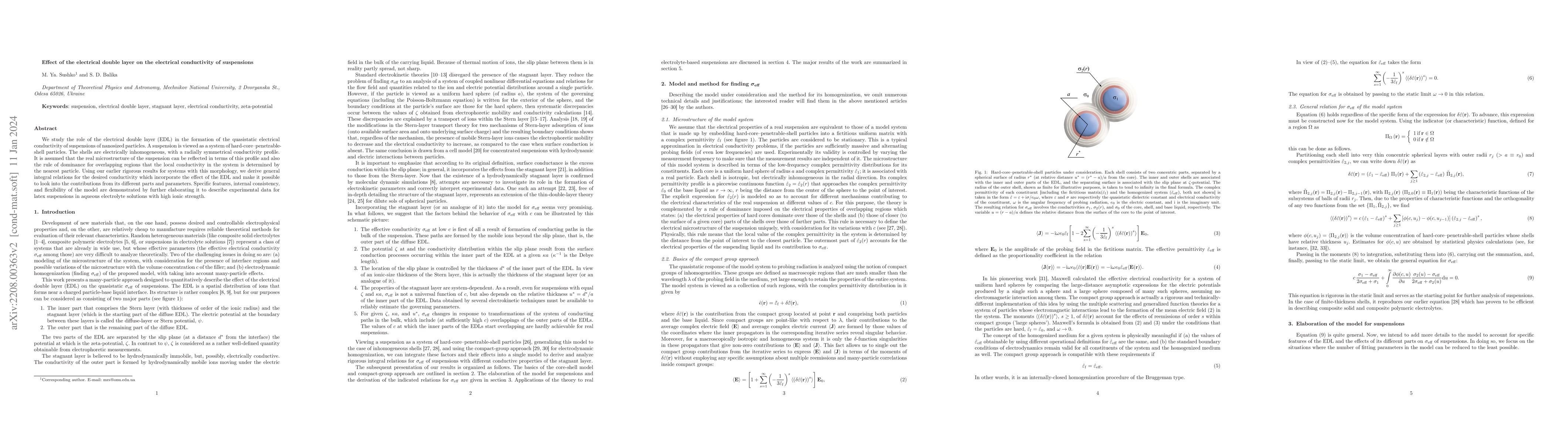 This paper investigates how the electrical double layer (EDL) influences the quasistatic electrical conductivity of nanosized particle suspensions. It derives general integral relations that account for EDL effects, demonstrating the model's applicability through analysis of latex suspensions in high ionic strength electrolyte solutions.
