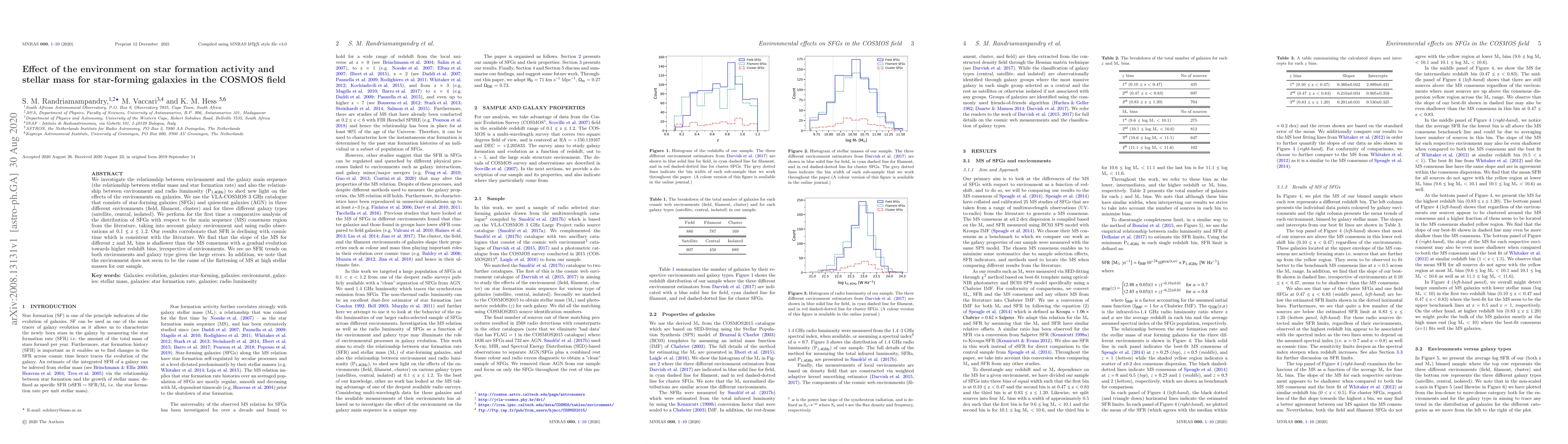 This paper explores the influence of different environments on star formation activity and stellar mass in star-forming galaxies within the COSMOS field. It finds no significant trends in star formation rate (SFR) across environments and galaxy types, and concludes that the environment does not drive the flattening of the main sequence at high stellar masses.