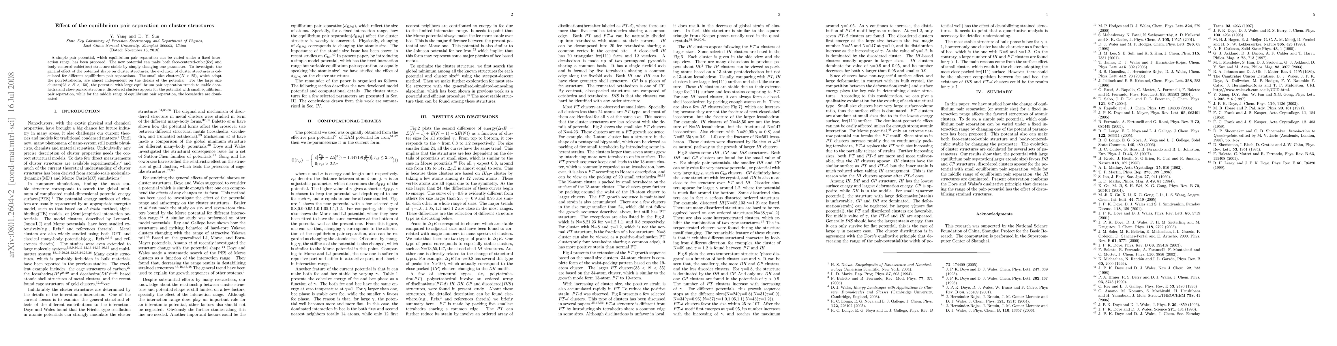 This paper proposes a simple pair potential that stabilizes both fcc and bcc structures by varying the equilibrium pair separation. It finds that small clusters ($N<25$) maintain polytetrahedral shapes regardless of potential details, while larger clusters ($25<N<150$) exhibit decahedral and close-packed structures with large equilibrium separations, icosahedra with medium separations, and disordered structures with small separations.