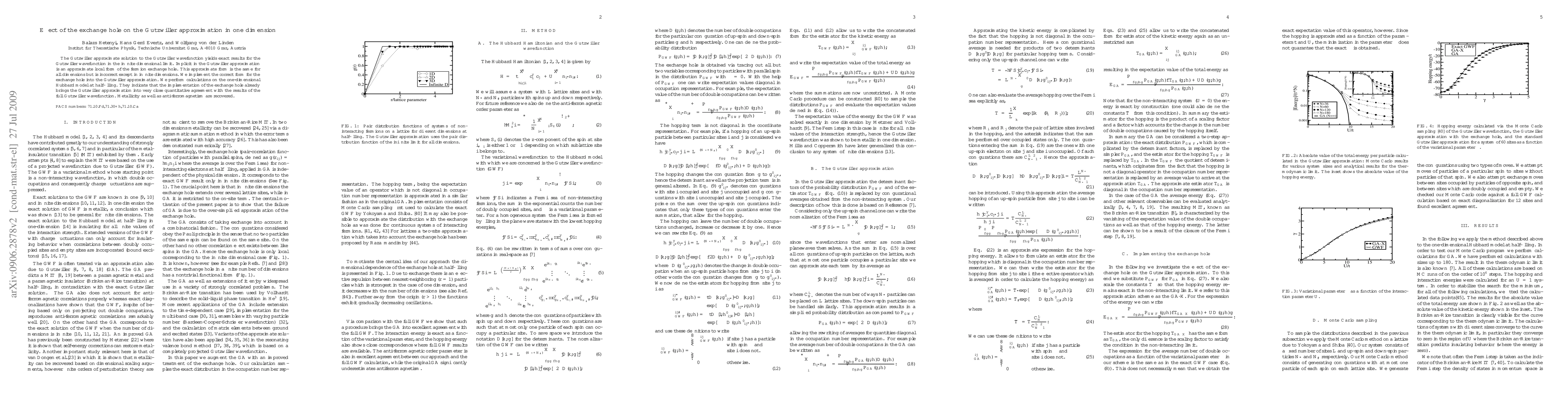 This paper corrects the exchange hole approximation in the Gutzwiller approximation for one-dimensional systems, showing that this correction significantly improves agreement with full Gutzwiller wavefunction results, recovering metallicity and anti-ferromagnetism.