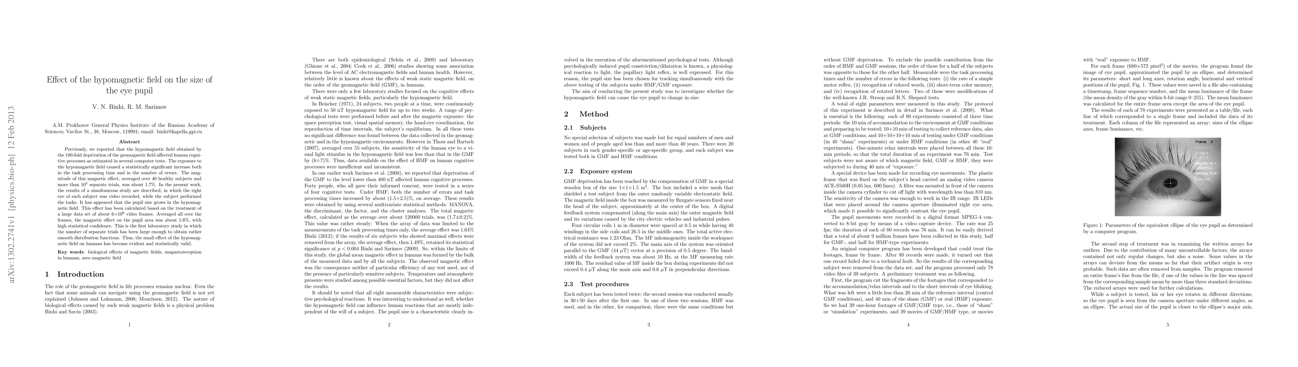 The study found that a weakened magnetic field increased human task processing time and errors by approximately 1.7%. Furthermore, pupil size in the right eye expanded under this hypomagnetic field condition, observed across a large dataset of 6.10^6 video frames with a 1.6% average effect. This research provides the first statistically valid evidence of the subtle impact of weakened magnetic fields on human cognition and physiology.