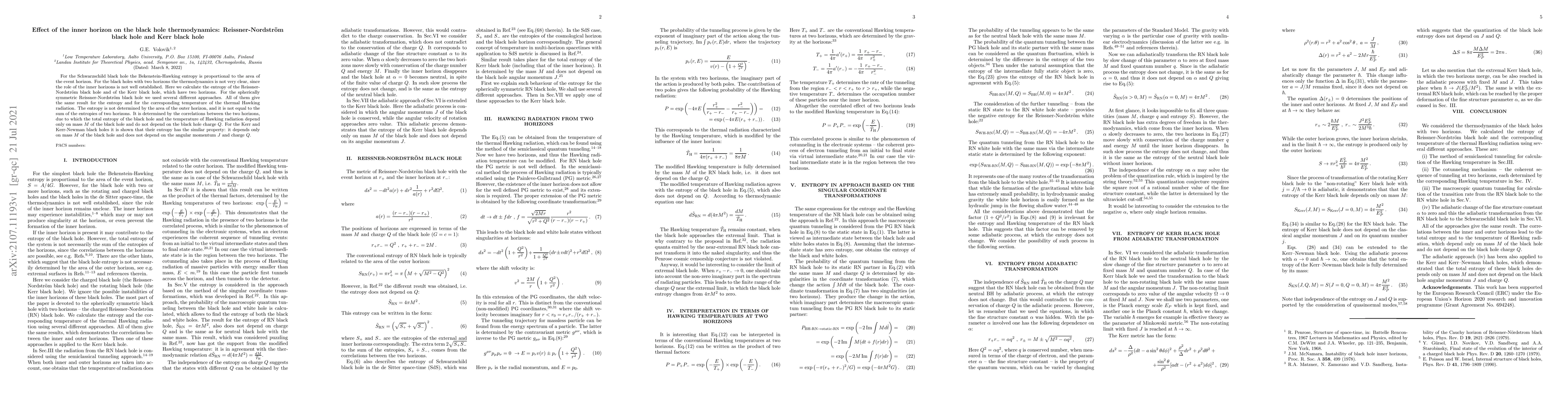 For the Schwarzschild black hole the Bekenstein-Hawking entropy is proportional to the area of the event horizon. For the black holes with two horizons the thermodynamics is not very clear, since the role of the inner horizons is not well established. Here we calculate the entropy of the Reissner-Nordstr\"om black hole and of the Kerr black hole, which have two horizons. For the spherically symmetric Reissner-Nordstr\"om black hole we used several different approaches. All of them give the same result for the entropy and for the corresponding temperature of the thermal Hawking radiation. The entropy is not determined by the area of the outer horizon, and it is not equal to the sum of the entropies of two horizons. It is determined by the correlations between the two horizons, due to which the total entropy of the black hole and the temperature of Hawking radiation depend only on mass $M$ of the black hole and do not depend on the black hole charge $Q$. For the Kerr and Kerr-Newman black holes it is shown that their entropy has the similar property: it depends only on mass $M$ of the black hole and does not depend on the angular momentum $J$ and charge $Q$.