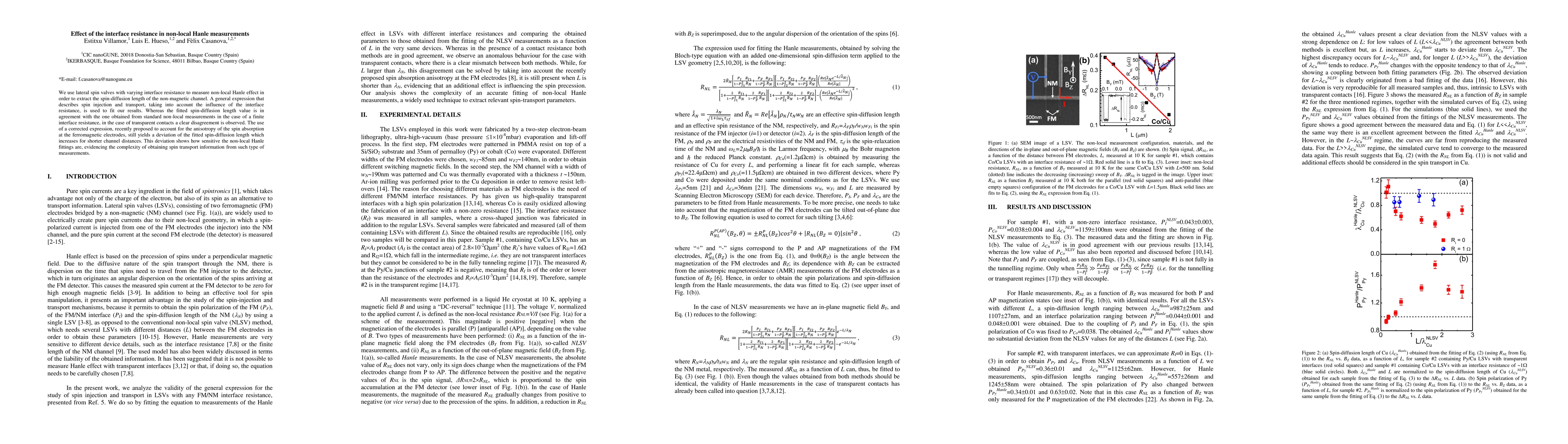 We use lateral spin valves with varying interface resistance to measure non-local Hanle effect in order to extract the spin-diffusion length of the non-magnetic channel. A general expression that describes spin injection and transport, taking into account the influence of the interface resistance, is used to fit our results. Whereas the fitted spin-diffusion length value is in agreement with the one obtained from standard non-local measurements in the case of a finite interface resistance, in the case of transparent contacts a clear disagreement is observed. The use of a corrected expression, recently proposed to account for the anisotropy of the spin absorption at the ferromagnetic electrodes, still yields a deviation of the fitted spin-diffusion length which increases for shorter channel distances. This deviation shows how sensitive the non-local Hanle fittings are, evidencing the complexity of obtaining spin transport information from such type of measurements.