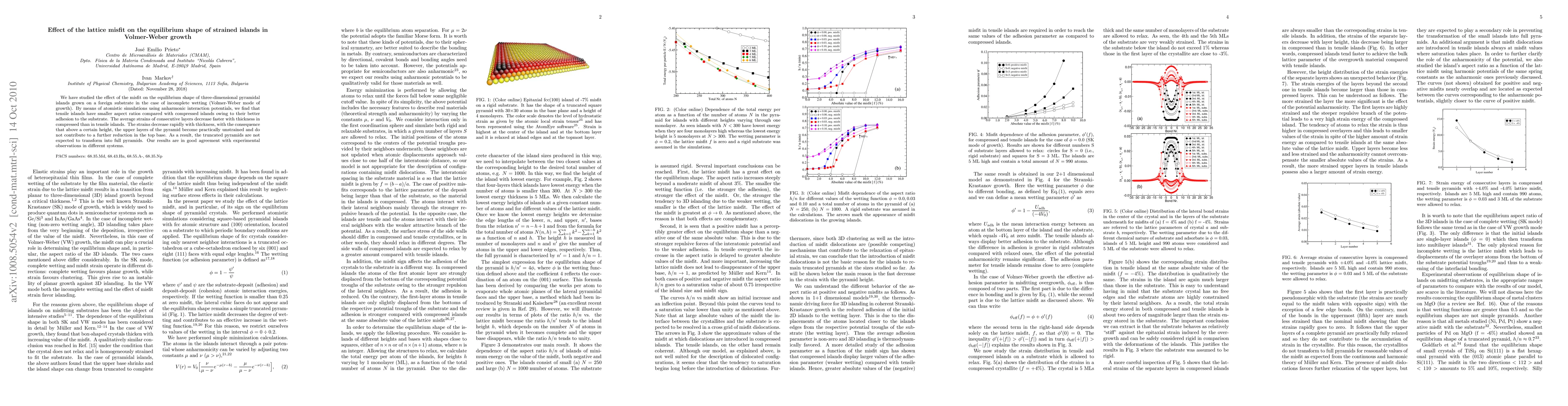 The shape of strained islands grown on a foreign substrate varies depending on whether they are compressed or tensile, with compressed islands having smaller aspect ratios due to better adhesion.