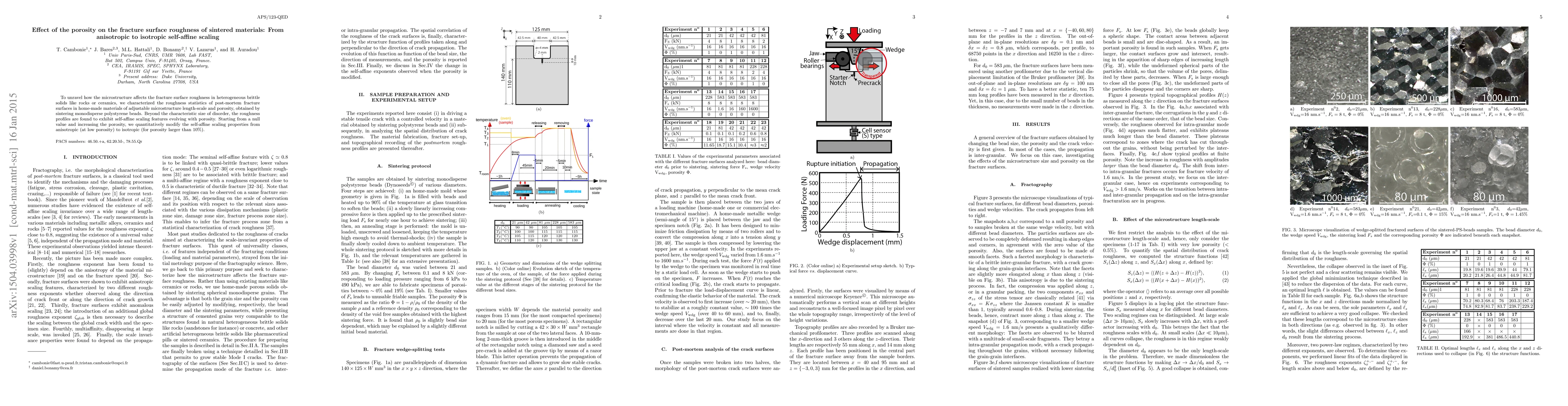 This study investigates how porosity influences the fracture surface roughness in sintered materials, finding that the roughness profiles transition from anisotropic to isotropic self-affine scaling as porosity increases beyond 10%. The research uses home-made materials of adjustable microstructure and porosity obtained by sintering monodisperse polystyrene beads.