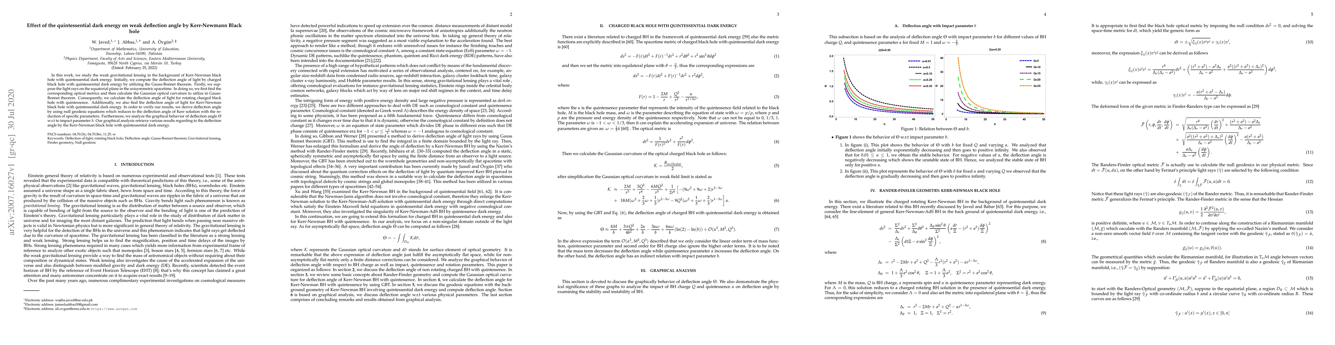 This paper investigates the weak gravitational lensing effect by a Kerr-Newman black hole in the presence of quintessential dark energy. It calculates the deflection angle of light using the Gauss-Bonnet theorem and null geodesic equations, analyzing the graphical behavior of the deflection angle concerning the impact parameter.
