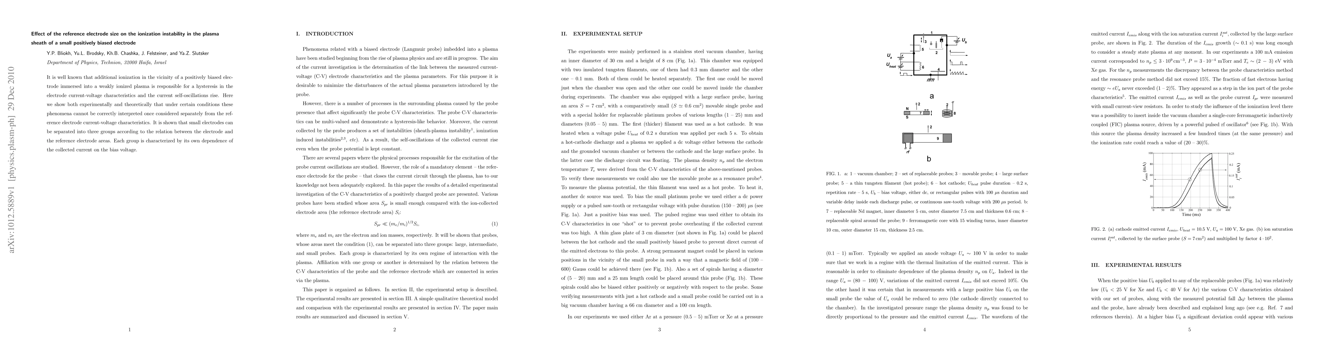 It is well known that additional ionization in the vicinity of a positively biased electrode immersed into a weakly ionized plasma is responsible for a hysteresis in the electrode current-voltage characteristics and the current self-oscillations rise. Here we show both experimentally and theoretically that under certain conditions these phenomena cannot be correctly interpreted once considered separately from the reference electrode current-voltage characteristics. It is shown that small electrodes can be separated into three groups according to the relation between the electrode and the reference electrode areas. Each group is characterized by its own dependence of the collected current on the bias voltage.
