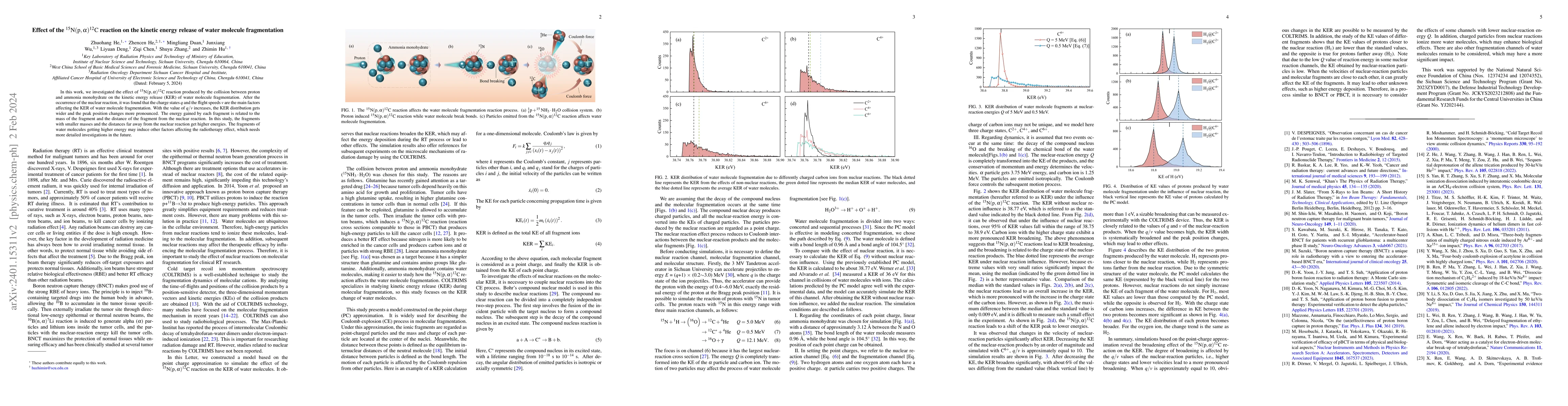This study investigates how the ${\rm^{15}N(p,\alpha)^{12}C}$ nuclear reaction influences the kinetic energy release (KER) of water molecule fragmentation. The charge states $q$ and flight speeds $v$ were found to significantly affect KER, with higher $q/v$ values leading to broader KER distributions and more pronounced peak shifts.