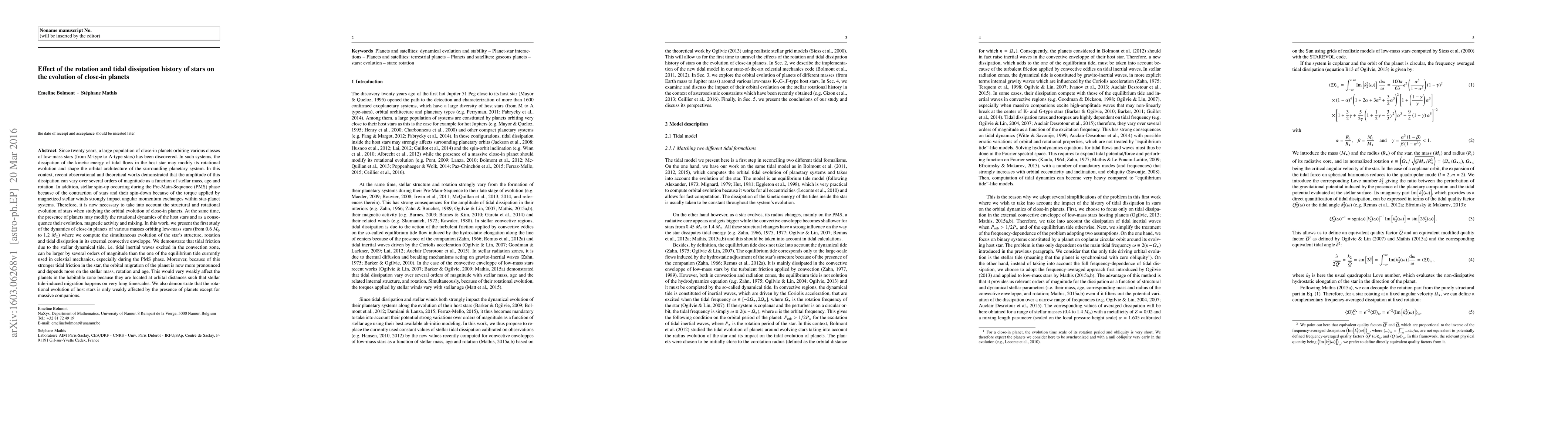 This paper investigates the impact of stellar rotation and tidal dissipation on the evolution of close-in planets around low-mass stars. It finds that tidal friction, especially during the pre-main sequence phase, significantly influences planetary orbital migration, which is more pronounced for lower-mass stars and faster rotators. The study concludes that while the rotational evolution of stars is generally unaffected by planets, massive companions can induce notable changes.