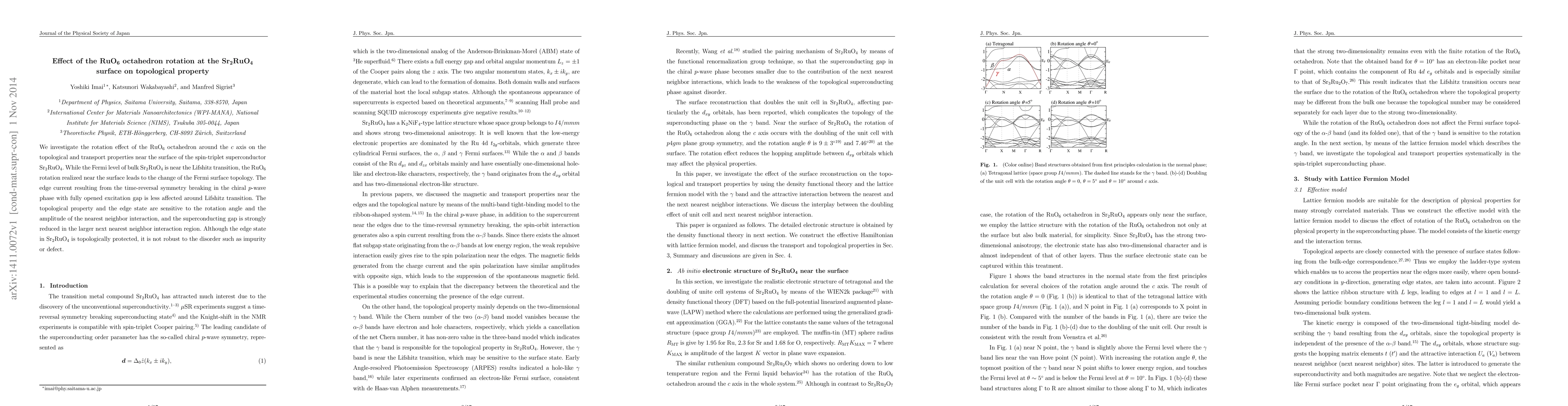 Researchers investigate how rotating a specific structure on the surface of Sr2RuO4 affects its superconducting properties, finding that it changes the Fermi surface topology and weakens the superconducting gap.