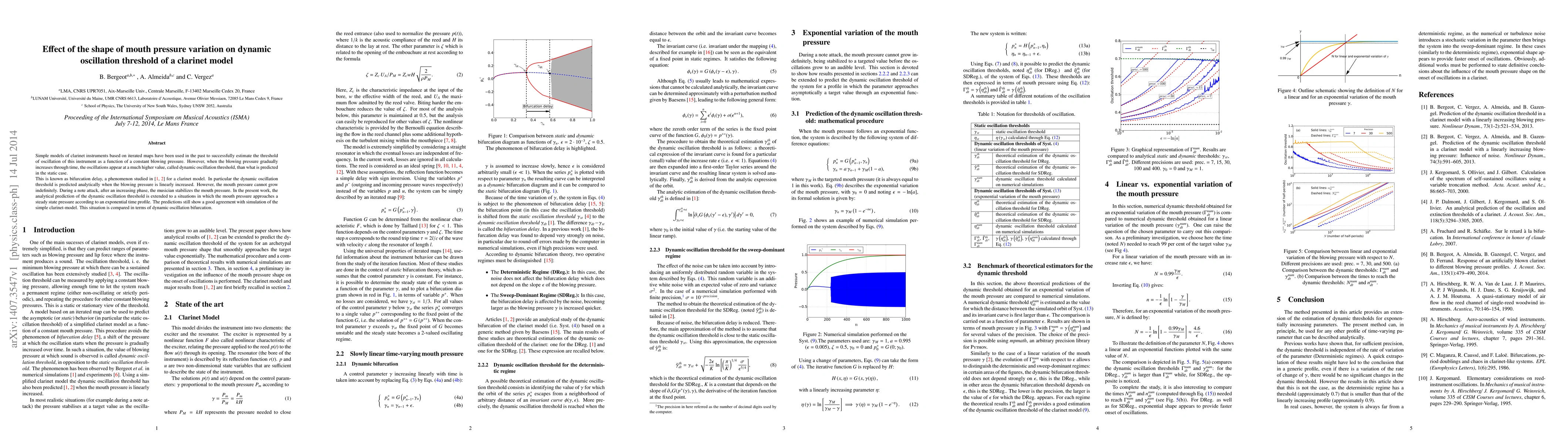 This paper extends the analytical prediction of the dynamic oscillation threshold for clarinet models to scenarios where the mouth pressure follows an exponential time profile rather than a linear increase, showing good agreement with simulations. The study compares these results to the bifurcation delay observed in clarinets when the blowing pressure stabilizes after an initial increase.