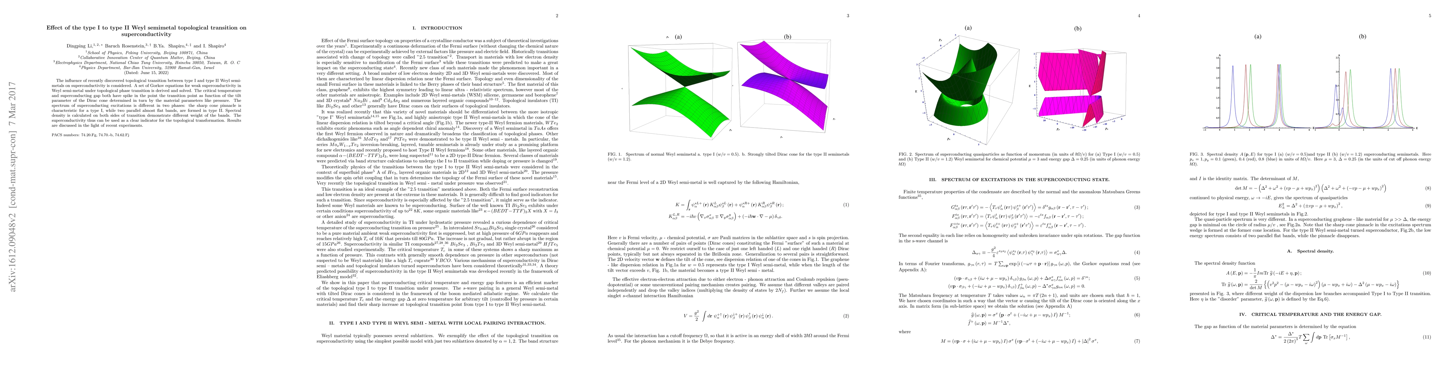 The influence of recently discovered topological transition between type I and type II Weyl semi-metals on superconductivity is considered. A set of Gorkov equations for weak superconductivity in Weyl semi-metal under topological phase transition is derived and solved. The critical temperature and superconducting gap both have spike in the point the transition point as function of the tilt parameter of the Dirac cone determined in turn by the material parameters like pressure. The spectrum of superconducting excitations is different in two phases: the sharp cone pinnacle is characteristic for a type I, while two parallel almost flat bands, are formed in type II. Spectral density is calculated on both sides of transition demonstrate different weight of the bands. The superconductivity thus can be used as a clear indicator for the topological transformation. Results are discussed in the light of recent experiments.