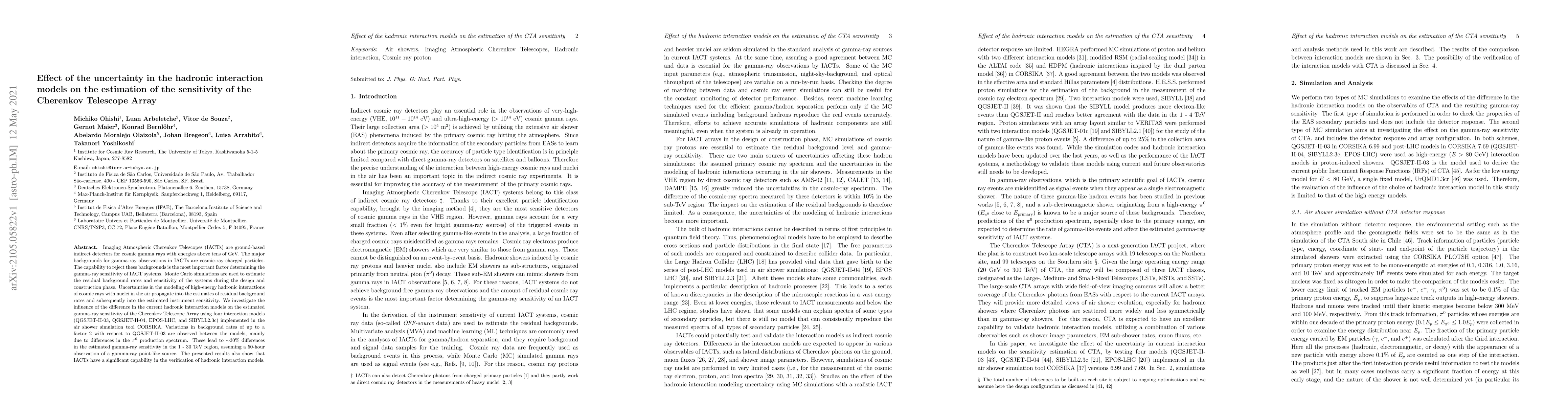 Imaging Atmospheric Cherenkov Telescopes (IACTs) are ground-based indirect detectors for cosmic gamma rays with energies above tens of GeV. The major backgrounds for gamma-ray observations in IACTs are cosmic-ray charged particles. The capability to reject these backgrounds is the most important factor determining the gamma-ray sensitivity of IACT systems. Monte Carlo simulations are used to estimate the residual background rates and sensitivity of the systems during the design and construction phase. Uncertainties in the modeling of high-energy hadronic interactions of cosmic rays with nuclei in the air propagate into the estimates of residual background rates and subsequently into the estimated instrument sensitivity. We investigate the influence of the difference in the current hadronic interaction models on the estimated gamma-ray sensitivity of the Cherenkov Telescope Array using four interaction models (QGSJET-II-03, QGSJET-II-04, EPOS-LHC, and SIBYLL2.3c) implemented in the air shower simulation tool CORSIKA. Variations in background rates of up to a factor 2 with respect to QGSJET-II-03 are observed between the models, mainly due to differences in the $\pi^0$ production spectrum. These lead to ~30% differences in the estimated gamma-ray sensitivity in the 1 - 30 TeV region, assuming a 50-hour observation of a gamma-ray point-like source. The presented results also show that IACTs have a significant capability in the verification of hadronic interaction models.