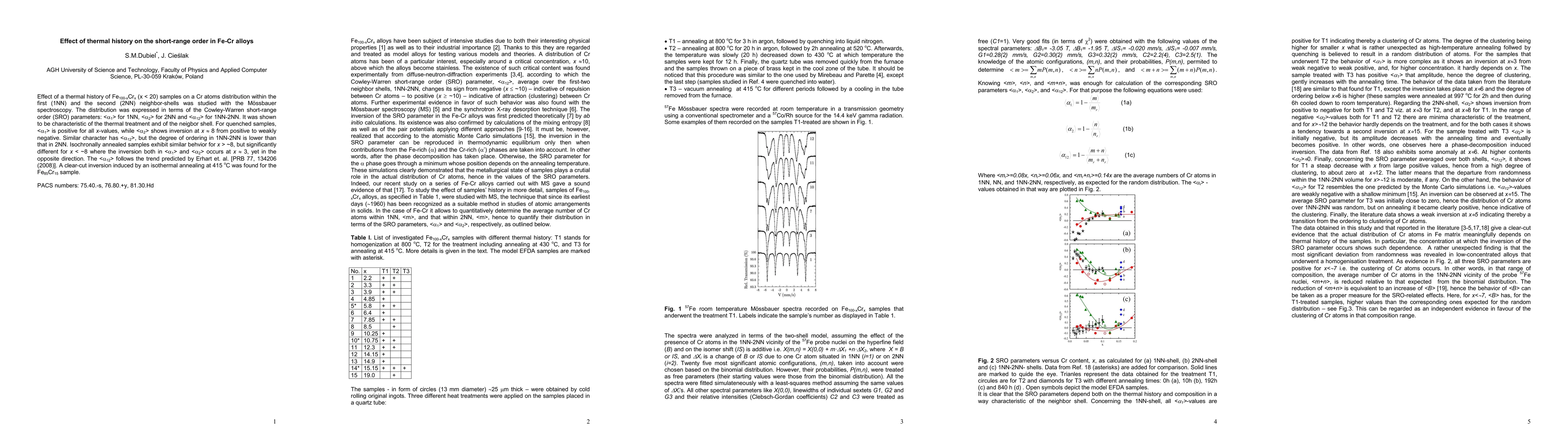 Effect of a thermal history of Fe(100-x)Cr(x) (x < 20) samples on a Cr atoms